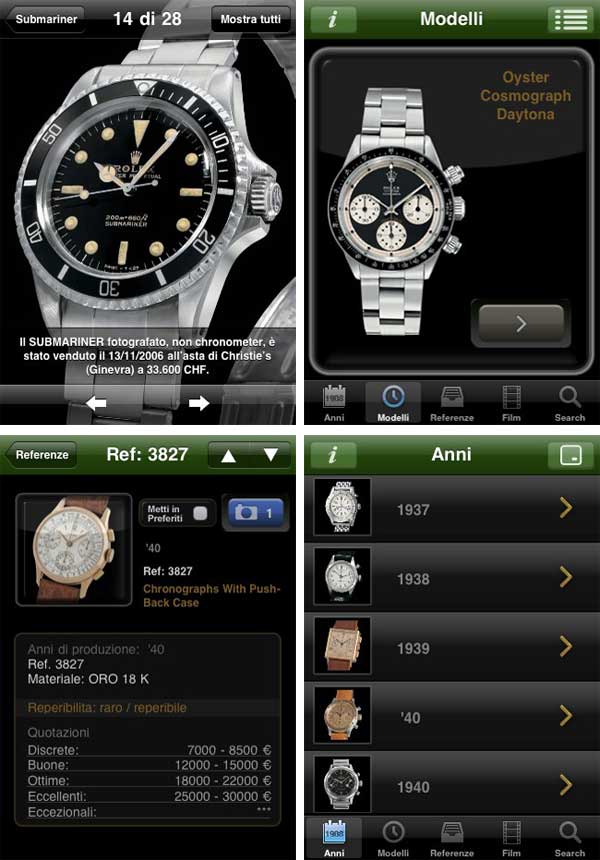 Proprio i contenuti del libro, che sta riscuotendo un grande successo a livello planetario tra gli appassionati del genere, sono l’asse portante dell’applicazione (ideata da Roberto Fraboni ed Emanuele Pisano). Con pochi click si accede al mondo Rolex degli ultimi 100 anni con descrizioni dettagliate di tutti i modelli e i prezzi aggiornati, di pezzi storici e per collezionisti fino ai modelli prodotti quest’anno.