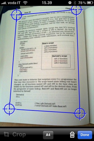 DocumentScanner, completamente tradotto nella nostra lingua, opera usando la macchina fotografica interna di iPhone grazie alla quale si acquisiscono le immagini delle pagine. Una volta memorizzate è possibile migliorarle, salvarle in formato JPG, combinarle in documenti PDF e condividere il tutto via Wi-Fi, e-mail o Internet grazie al pieno supporto per Google Docs.