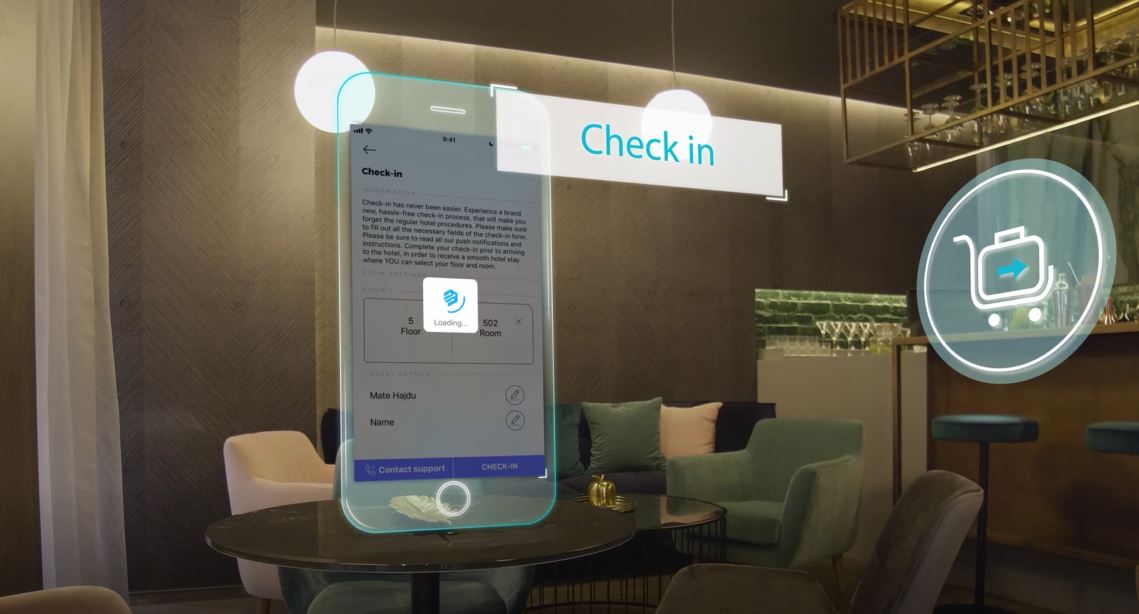 Oltre all’app, l’hotel ungherese KviHotel offre un’esperienza digitale estesa anche alla struttura: la facciata dell’hotel orientata verso il cortile, decorata con graffiti e ben visibile dalla terrazza, è caratterizzata da un feature digitale che, inquadrata utilizzando l’app per la realtà aumentata LARA AR, prende vita e, con l’aiuto di un video introduce all’uso dell’app TMWR Hotels.