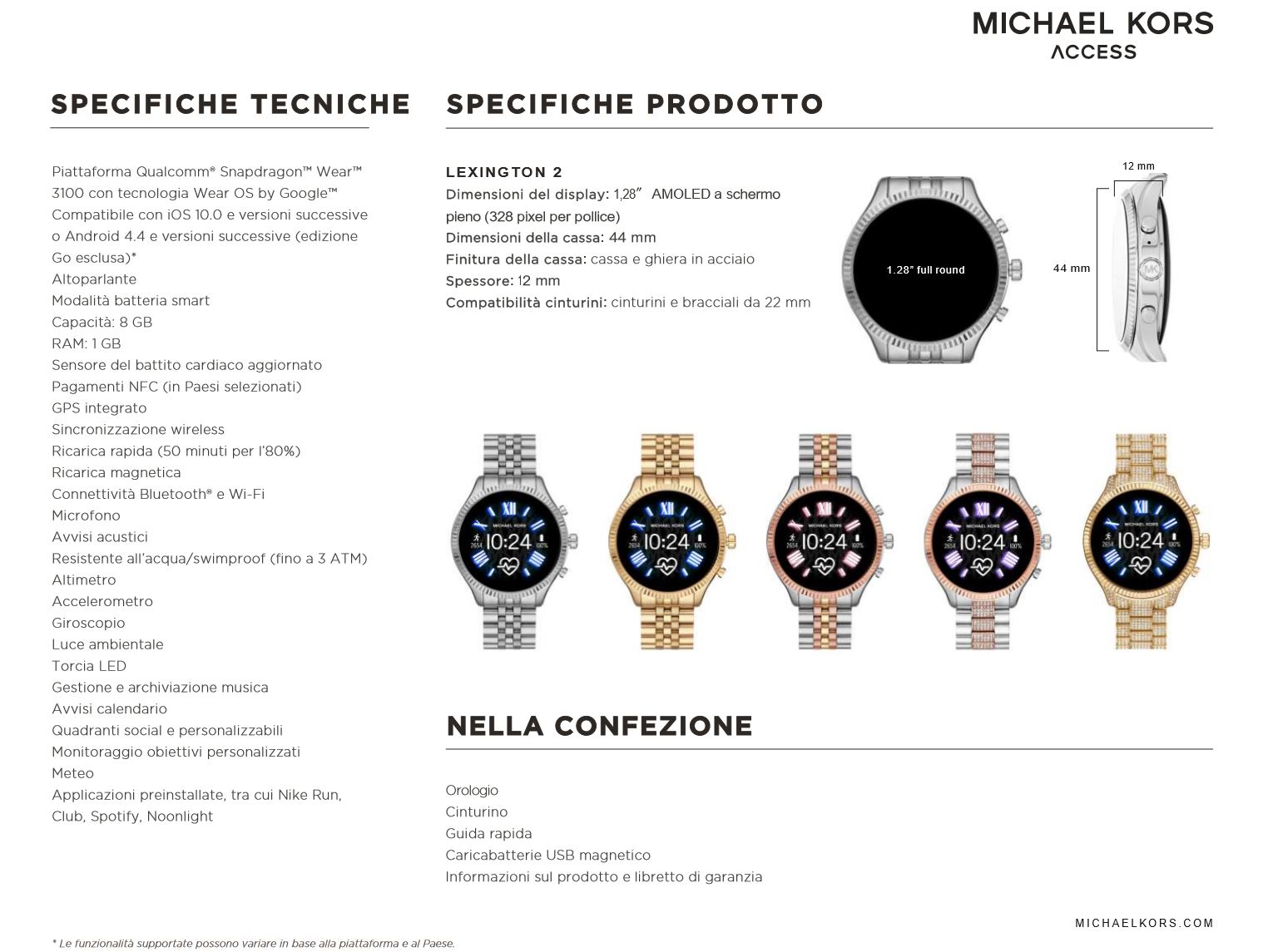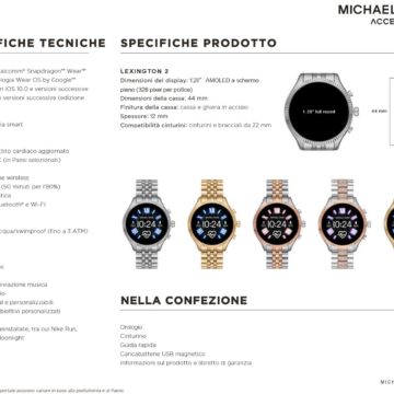 Utilizzando due delle piattaforme più vendute di Michael Kors, gli smartwatch Lexington 2 e Bradshaw 2 puntano a un design glamour , senza rinunciare all’aspetto tecnologico, mettendo a disposizione un altoparlante per offrire agli utenti la possibilità di accettare le chiamate in arrivo direttamente sullo smartwatch.