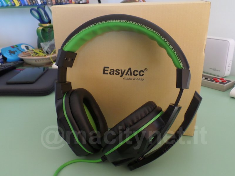 Per giocare su Mac è ideale disporre di una cuffia isolante, potente e dal look aggressivo. In rete ve ne sono milioni, ma vi consigliamo quella EasyAcc che vedete in foto. Macitynet l’ha recensita a questo indirizzo, riscontrando una qualità più che sufficiente ad un prezzo molto conveniente. Dispone anche di microfono, per sessioni di gioco online, in cui dialogare con la propria crew, magari nel pieno di un’avventura RTS. Su Amazon il prezzo oscilla, ma si mantiene vicina ai 20 euro.