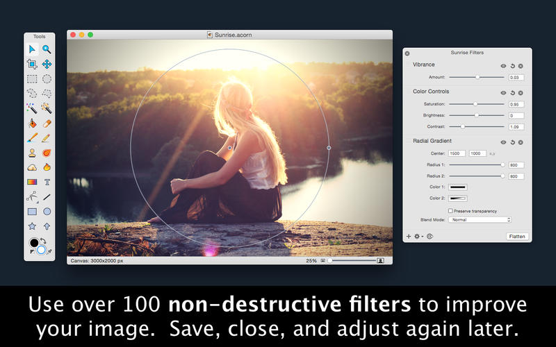 Acorn è un potente software di disegno e fotoritocco che integra funzionalità per l’importazione di file Photoshop (PSD) con o senza layer, tool per le mascherature alfa che permettono di isolare alcune aree per proteggerle dalle modifiche del colore, filtri e decine di strumenti disponibili normalmente solo in applicazioni molto più costose.
