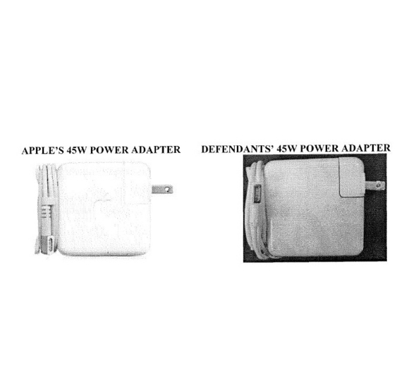 Le componenti, dicono gli avvocati di Apple, sono di fatto una palese scopiazzatura del design coperto da copyright nel 2003. Per dimostrare la sua tesi viene acclusa al fascicolo presentato alla corte federale della California una serie di immagini che mostrano l’un accanto all’altro i prodotti originali e quelli di Media Solutions Holdings; la similitudine, in effetti (foto in calce), è molto evidente. Se non fosse per la presenza sul prodotto Apple della tradizionale Mela, non si potrebbe fare alcuna distinzione. à presente persino il MagSafe che garantisce la connessione al contatto di alimentazione vero e proprio sulla macchina.
