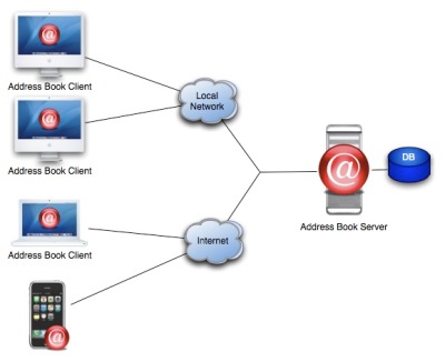Sono molti gli strumenti che consentono di condividere i contatti tra gli utenti Mac OS X. Questi tool sono generalmente pensati per ambienti di piccole e medie dimensioni nei quali è richiesto che ogni individuo contribuisca a centralizzare l’archivio della Rubrica Indirizzi. Ogni tool si differenzia dagli altri per particolari peculiarità , aspetti e opzioni. Address Book Server è un progetto interessante nato grazie al contributo di più utenti che hanno avuto modi di provarlo e testarlo approfonditamente. Il software è fornito in due versioni: il software-server (da installare su un computer centralizzato, sempre connesso in rete) e il software-client da installare sugli altri computer (Mac o PC con Windows o Linux).