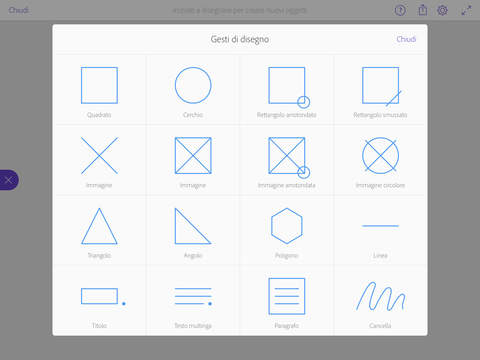 Sono disponibili classici strumenti per inserire righe di testo segnaposto, altre che permettono di tracciare velocemente il profilo delle forme base o delle caselle di testo e delle cornici. Non manca la possibilità di sfruttare le risorse salvate dalle librerie di Creative Cloud, così come sfogliare, visualizzare in anteprima e scegliere tra oltre cento font gratuiti di qualità direttamente dall’app.