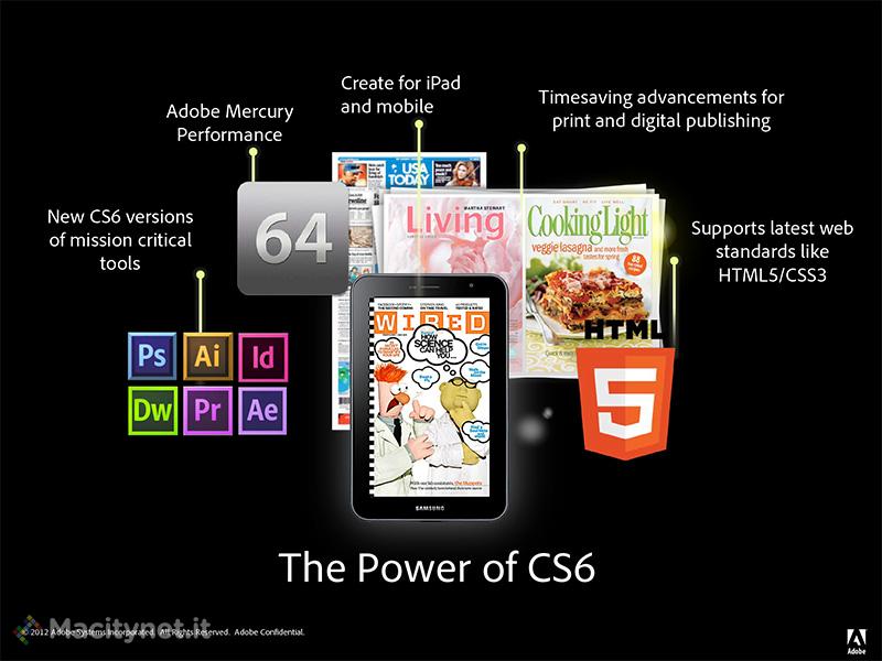 La CS 6, la rivoluzione annunciata della maggior suite per il DTP, punto di riferimento per fotografi, operatori di impaginazione, grafici e creativi in genere, ha debuttato anche in Italia. Come di consueto la società di San Josè ha impegnato in forze in suo team locale per introdurre alla stampa tutte le novità del pacchetto, che da qualche anno diventa sempre più profondo nelle sue potenzialità e sempre più strutturato e che quest’anno si colloca pienamente nel trend del cloud.