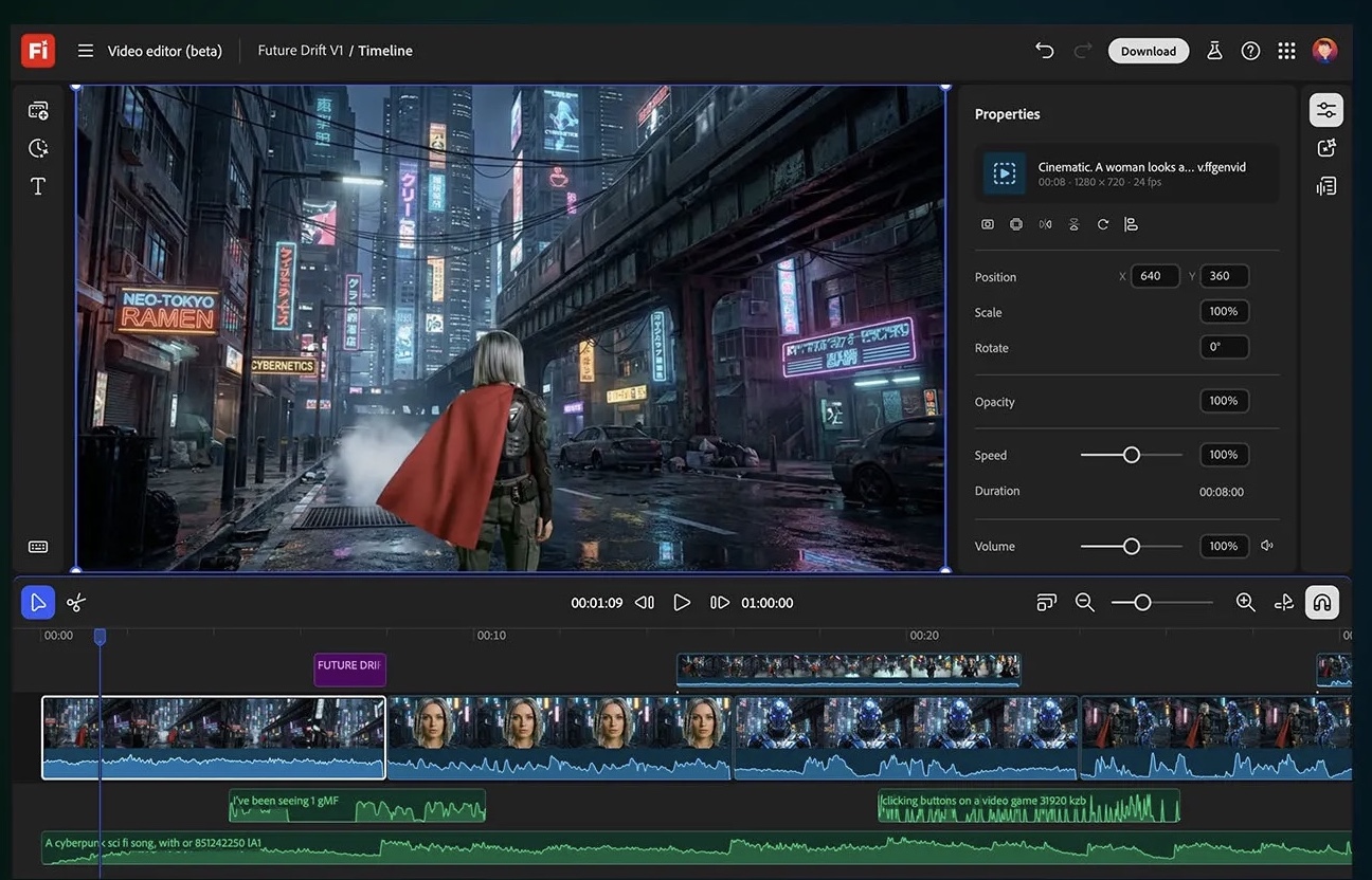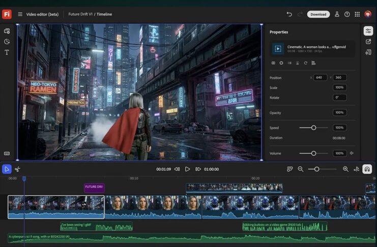 L’editor consente di lavorare su una timeline, combinando generazione automatica e interventi manuali. Questo approccio ibrido riflette bene la direzione di Adobe: usare l’intelligenza artificiale come acceleratore creativo, lasciando però spazio al controllo umano nelle fasi chiave.