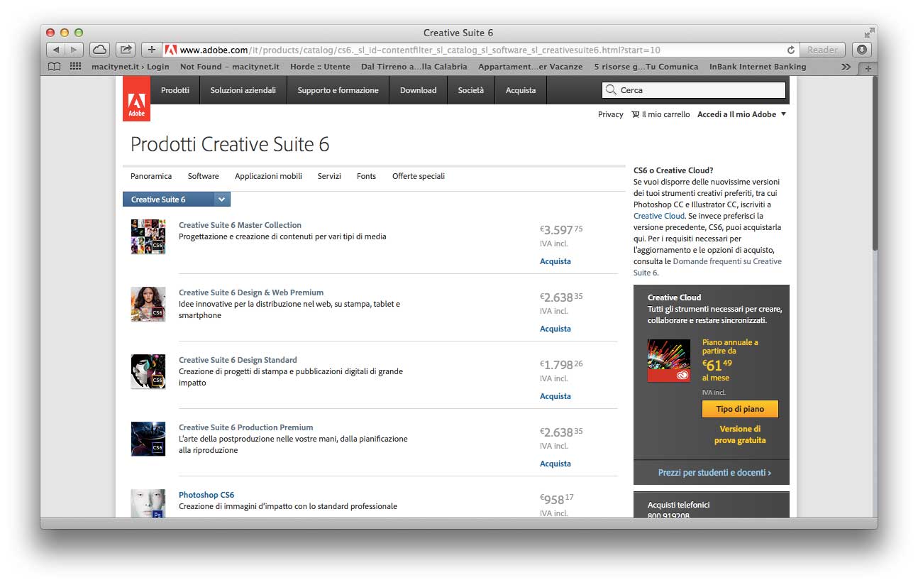 Adobe da qualche tempo si sta concentrando sulla fornitura di soluzioni attraverso Creative Cloud e servizi interamente digitali e quindi procederà via via all’eliminazione delle versioni confezionate dei prodotti Creative Suite. I prodotti Creative Suite, come già spiegato, continueranno ad essere acquistabili come download elettronici sul sito Adobe.com.
