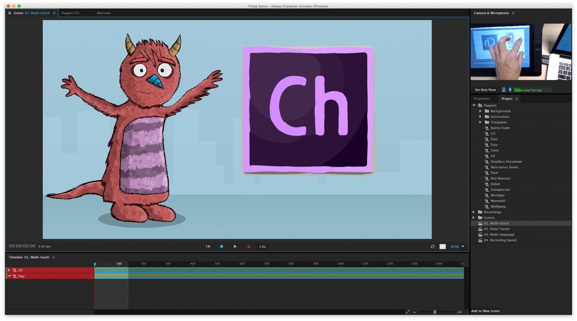 Molte applicazioni supportano tecnologie touch; in Character Animator, ad esempio, è possibile animare i personaggi muovendo le dita sul touchscreen (di un computer o un tablet); Premiere Pro è già compatibile con il trackpad Force Touch dei nuovi Mac, alla stregua di quanto è già possibile fare su iMovie (un clic deciso sulla mappa nella timeline permette, ad esempio, di accedere al menu “Stile” e scegliere tra diversi stili, l’applicazione comprende la pressione esercitata sui pulsanti “Avanti veloce” e “Riavvolgi” permettendo di aumentare la velocità di queste operazioni).