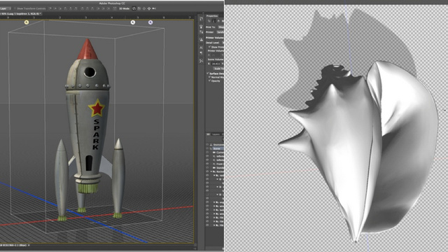 Photoshop CC supporta stampanti 3D desktop come ad esempio MakerBot Replicator e vari materiali disponibili ad esempio su Shapeways, comunità e marketplace per la stampa 3D che mette a disposizione ceramiche, metalli e arenarie in vari colori. Gli utenti Photoshop possono eseguire l’upload dei modelli 3D sul service di stampa Sketchfab 3D e incorporarli nei profili Behance, una famosa community di creativi, sfruttando il 3D viewer interattivo di Sketchfab.