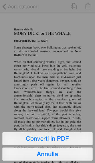 Ricordiamo che con l’app gratuita Adobe Reader gli utenti iPhone e iPad possono aprire, consultare e leggere i documenti PDF allegati alle email, provenienti da Internet e siti web o da altre app. E’ anche possibile gestire i documenti creando cartelle e cambiando la disposizione, inserire note e commenti, così come consultare note e commenti di altri utenti. Per esportare PDF in file di Word o Excel oppure per creare file PDF occorre acquistare gli abbonamenti Adobe proposti in-app-purchase.