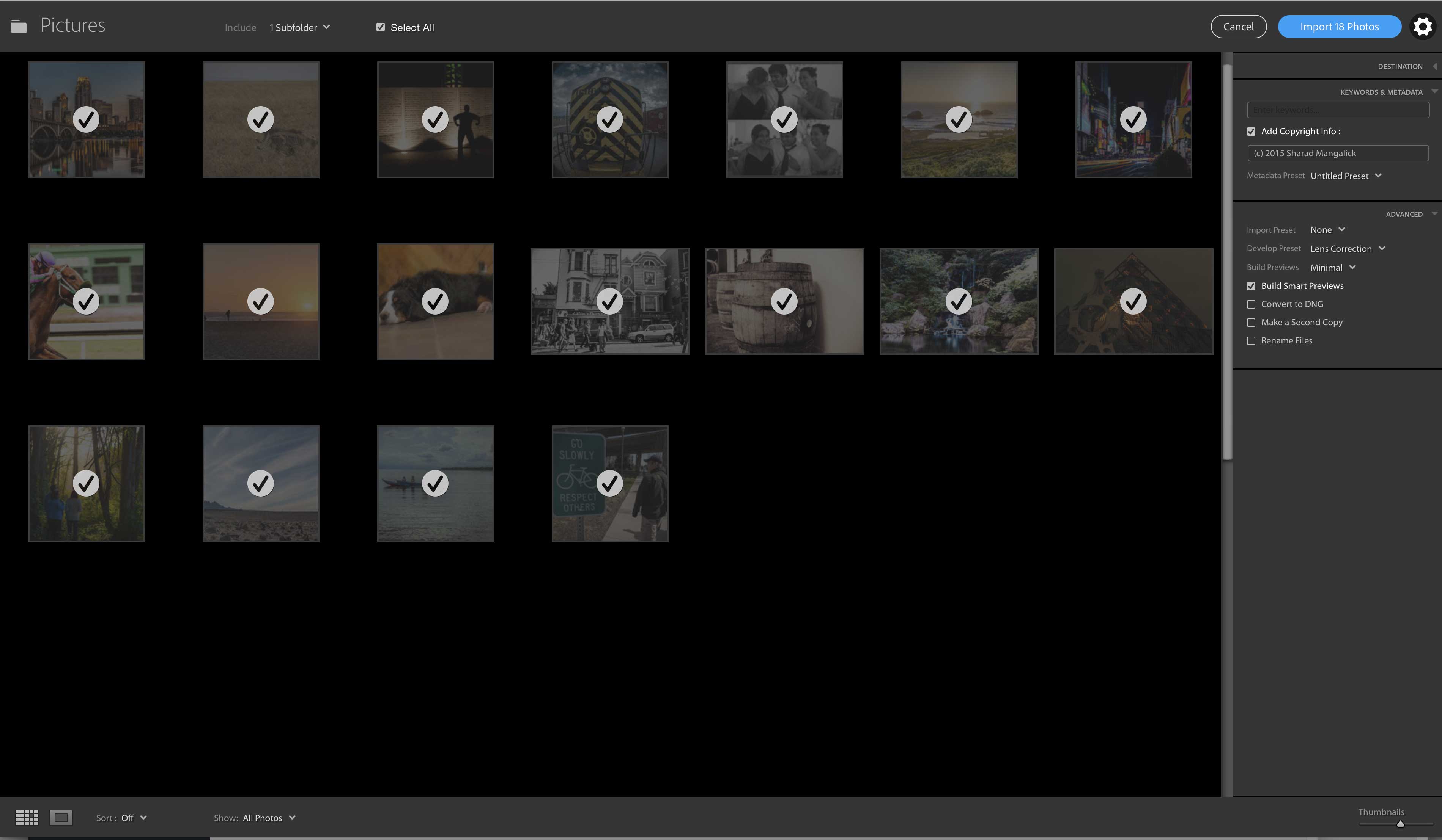 Più articolato il discorso sulla nuova modalità di importazione dei file. Nell’ultima versione di Lightroom(6.2) Adobe ha integrato uno strumento “Importa” riprogettato che dovrebbe semplificare la procedura di importazione da videocamere, fotocamere e dischi ma a quanto pare a molti il nuovo strumento non piace.