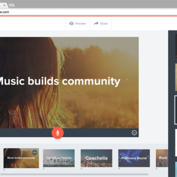 Anche il principio per la creazione di filmati è uguale. Si specifica una frase iniziale e si spiega poi come si intende fare (promuovere un’idea, creare un invito, preparare una lezione e così via). A questo punto è possibile aggiungere la propria voce, foto, icone e testi per ogni slide, riprodurre il filmato e condividerlo. In modo molto semplice è possibile creare slideshow, modificare la colonna sonora di accompagnamento, spostare in diverso ordine le slide animate che compongono il filmato.