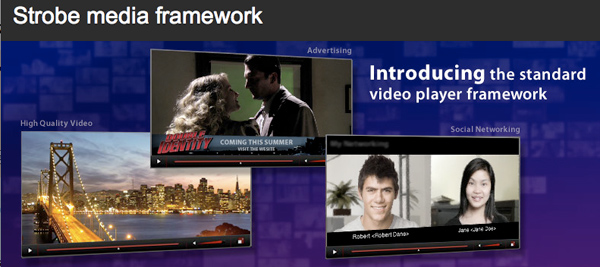 Adobe ha presentato, inoltre, un framework software, nome in codice Strobe, che nelle intenzioni della società dovrebbe definire uno standard aperto per i lettori multimediali e accelerare la creazione e la distribuzione di video in alta qualità e di esperienze interattive per il web.