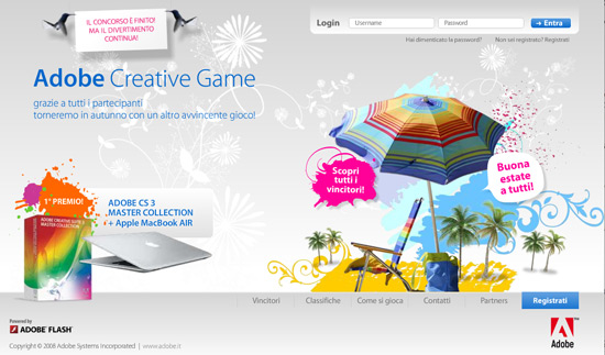 Si è concluso il 30 giugno il concorso Adobe Creative Game iniziato nel mese di marzo: il team Adobe e gli Adobe Guru hanno messo alla prova con domande e quiz online oltre 7300 giocatori unici registrati, per un totale di oltre 143mila partite in single player e oltre 45mila in multi player.
