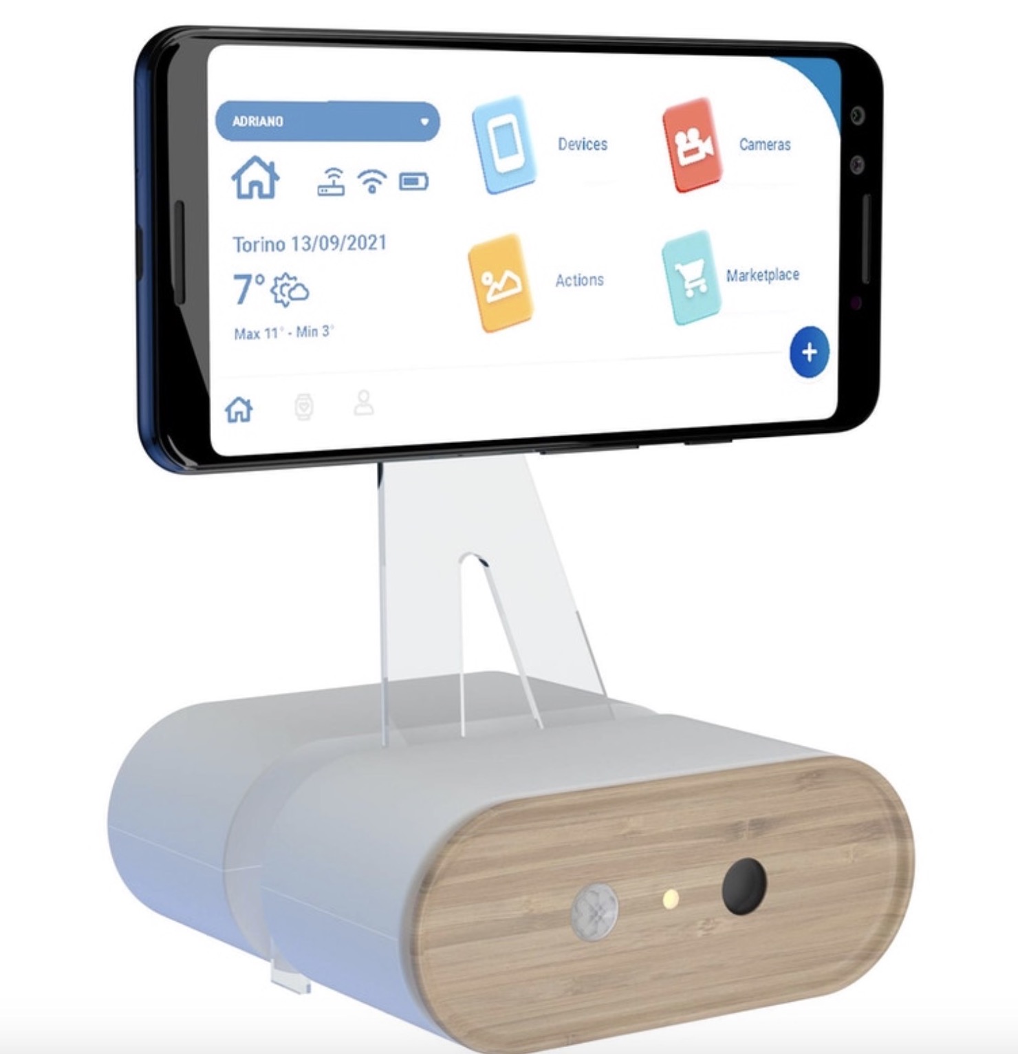 Adriano gestirà tutti i dispositivi smart presenti in casa, dai cancelli alle tapparelle elettriche, dalla qualità dell’aria agli elettrodomestici, gestendo anche la sicurezza degli ambienti. In caso di un’intrusione, infatti, i sensori di movimento di Adriano accendono la camera del cellulare per monitorare l’abitazione.