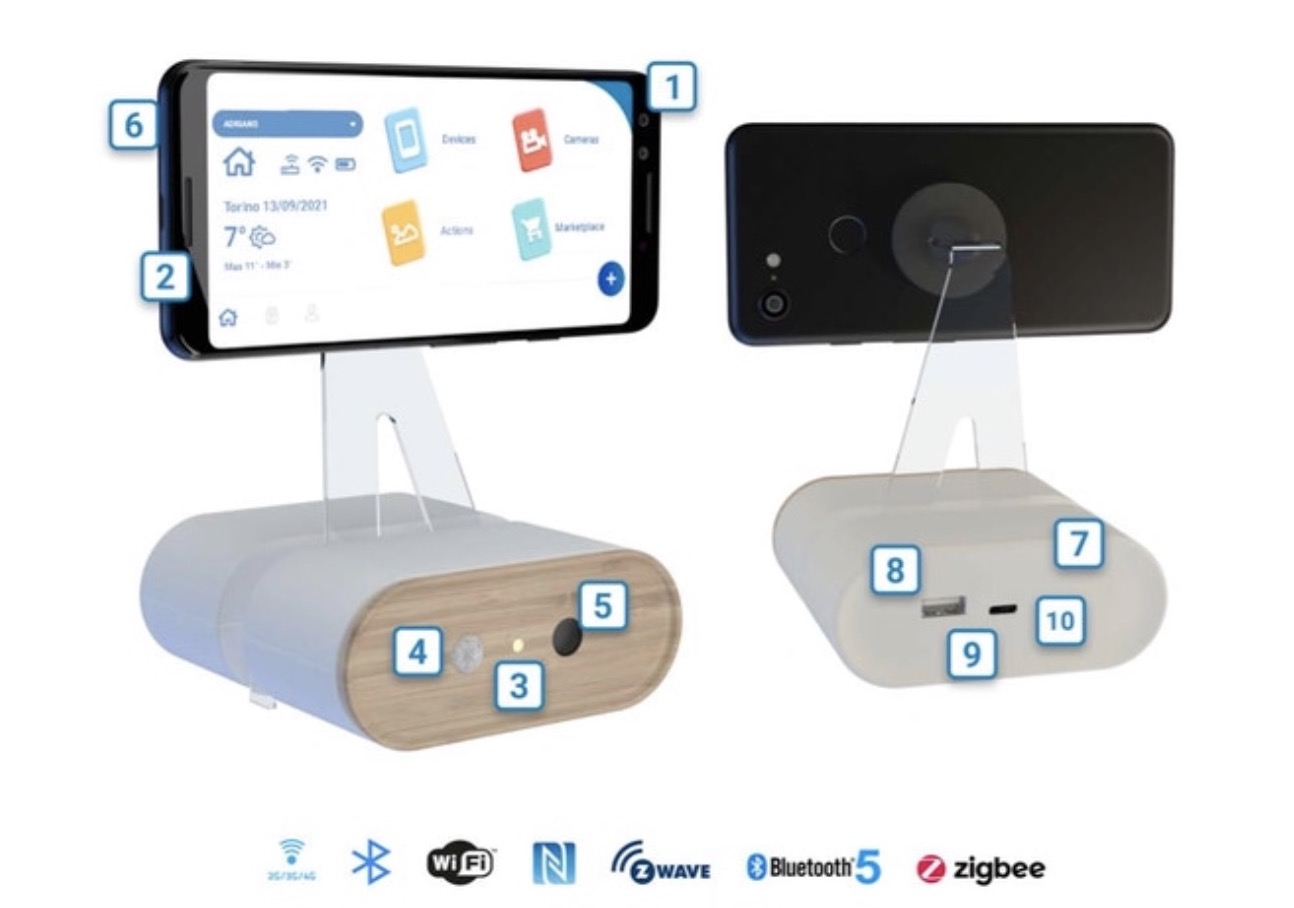 Adriano è un dispositivo che trasforma vecchi smartphone e tablet in nuovi e potenti Gateway di home automation, capaci di gestire ogni dispositivo intelligente tramite l’app dedicata e in grado, grazie alle sue batterie di back-up che si uniscono a quelle dei cellulari, di funzionare senza elettricità e navigare senza wifi sui network 4 e 5 G.
