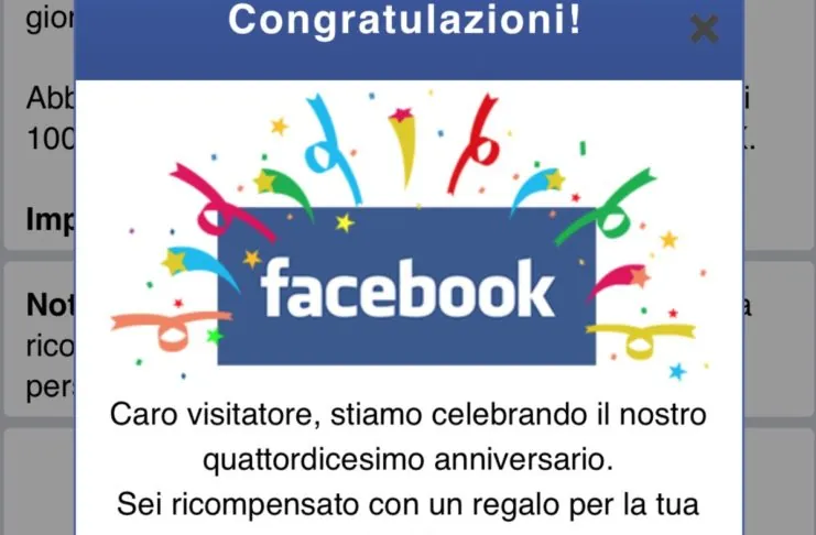 Abbiamo indagato su che cosa richiamasse quel banner quando un utente visita il nostro sito usando l’applicazione Facebook (non succede se si usa Safari) e abbiamo messo in campo i nostri tecnici e anche i pubblicitari per verificare se fosse qualche banner legittimo di nostri clienti infiltrato a fare da interruttore o se la cosa fosse nel mezzo tra noi e Facebook.