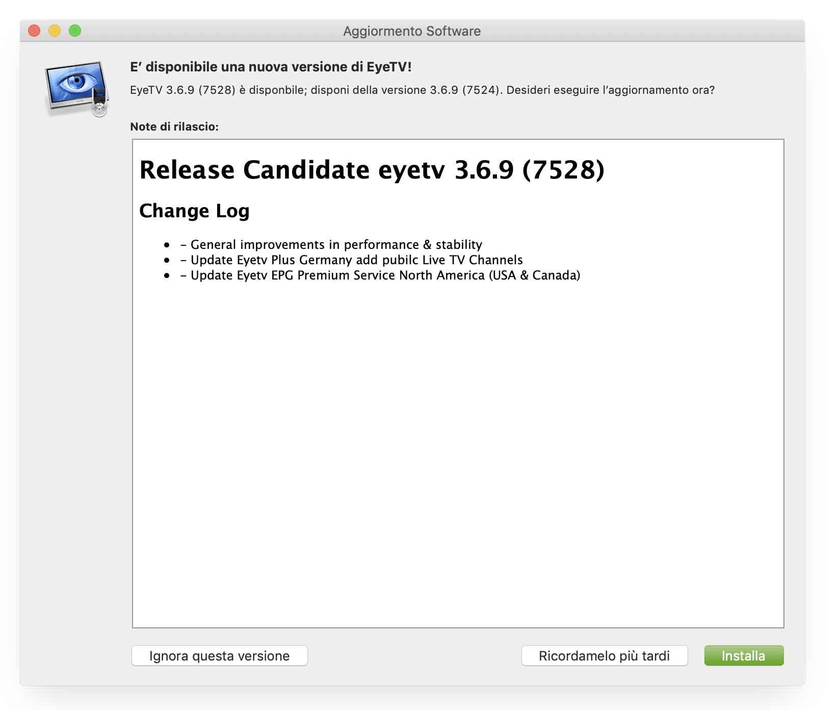 L’applicazione EyeTV per Mac è stata aggiornata. Non è purtroppo una applicazione a 64 bit ma la versione 3.6.9 ripristina la compatibilità con il tuner HomeRun HD.