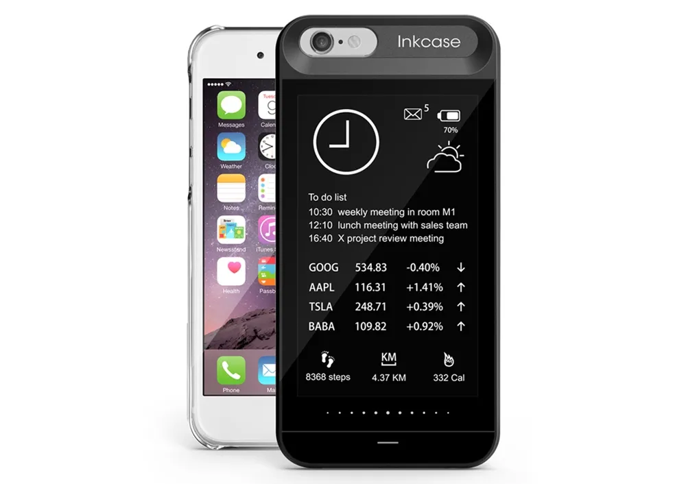 Lo schermo e-ink di InkCase i6 offre una maggiore risoluzione rispetto ai modelli precedenti per iPhone 5 e abbandona i pulsanti meccanici sostituiti da una interfaccia capacitiva sensibile al tocco. La tecnologia e-ink è perfetta per leggere anche all’aperto e sotto la luce diretta del sole e per le app e le funzioni che richiedono tempi di risposta non particolarmente rapidi. Dirottando sul secondo schermo di InkCase i6 le funzioni già descritte gli utenti di iPhone 6 possono risparmiare energia e prolungare l’autonomia del proprio smartphone.