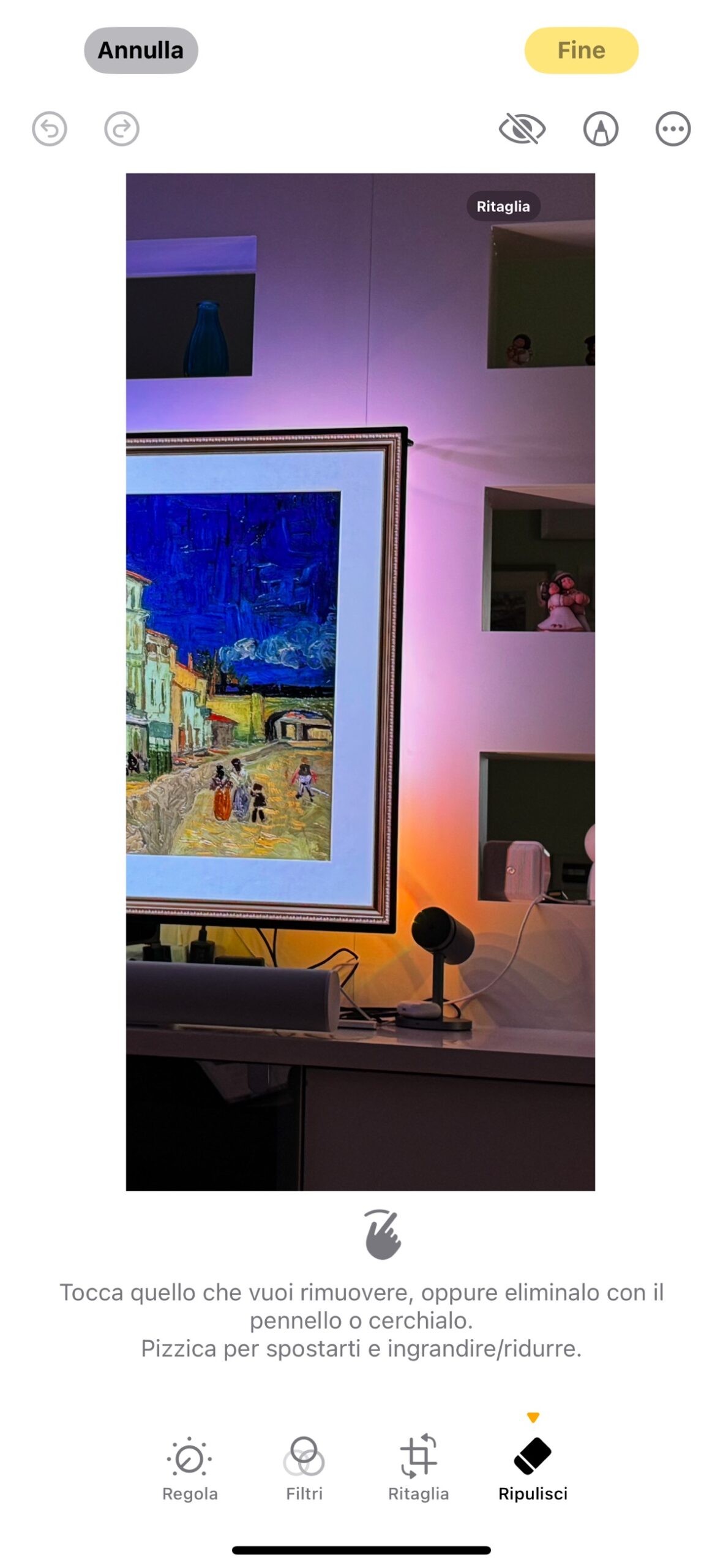 Con l’editing avanzato di Apple Intelligence si possono eliminare cavi o oggetti consistenti, persone che vi hanno “bombato” una foto con la capacità di ricostruire lo sfondo nascosto grazie all’AI. Simpatico l’effetto lampo di cancellazione dell’oggetto e i risultati, se non all’altezza di Photoshop e della sua AI, sono abbastanza soddisfacenti e soprattutto comodi da usare al volo su iPhone.
