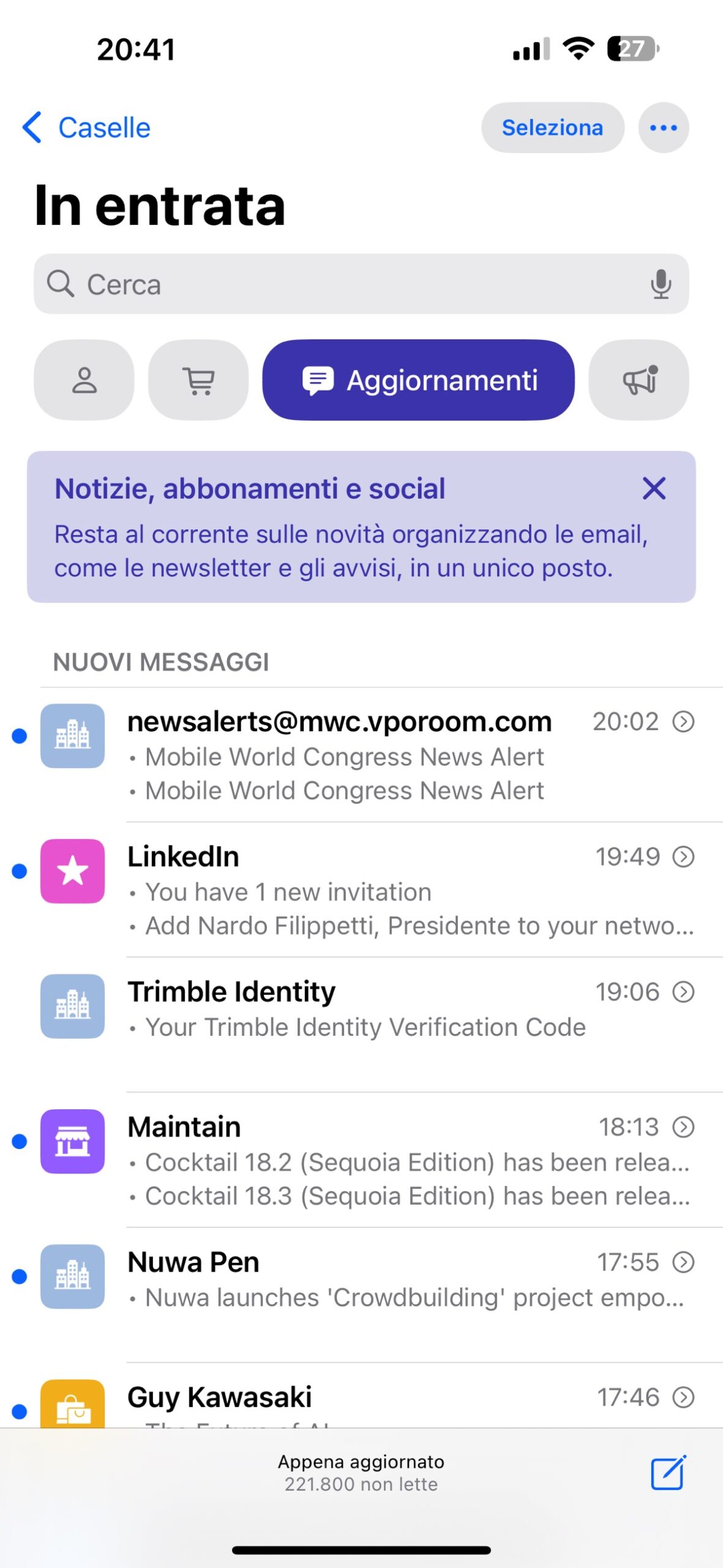 Ci sono tutti gli strumenti per le mail come riassunti, risposte veloci e aggregazione dei messaggi per tipologia (transazioni, comunicazioni etc…)