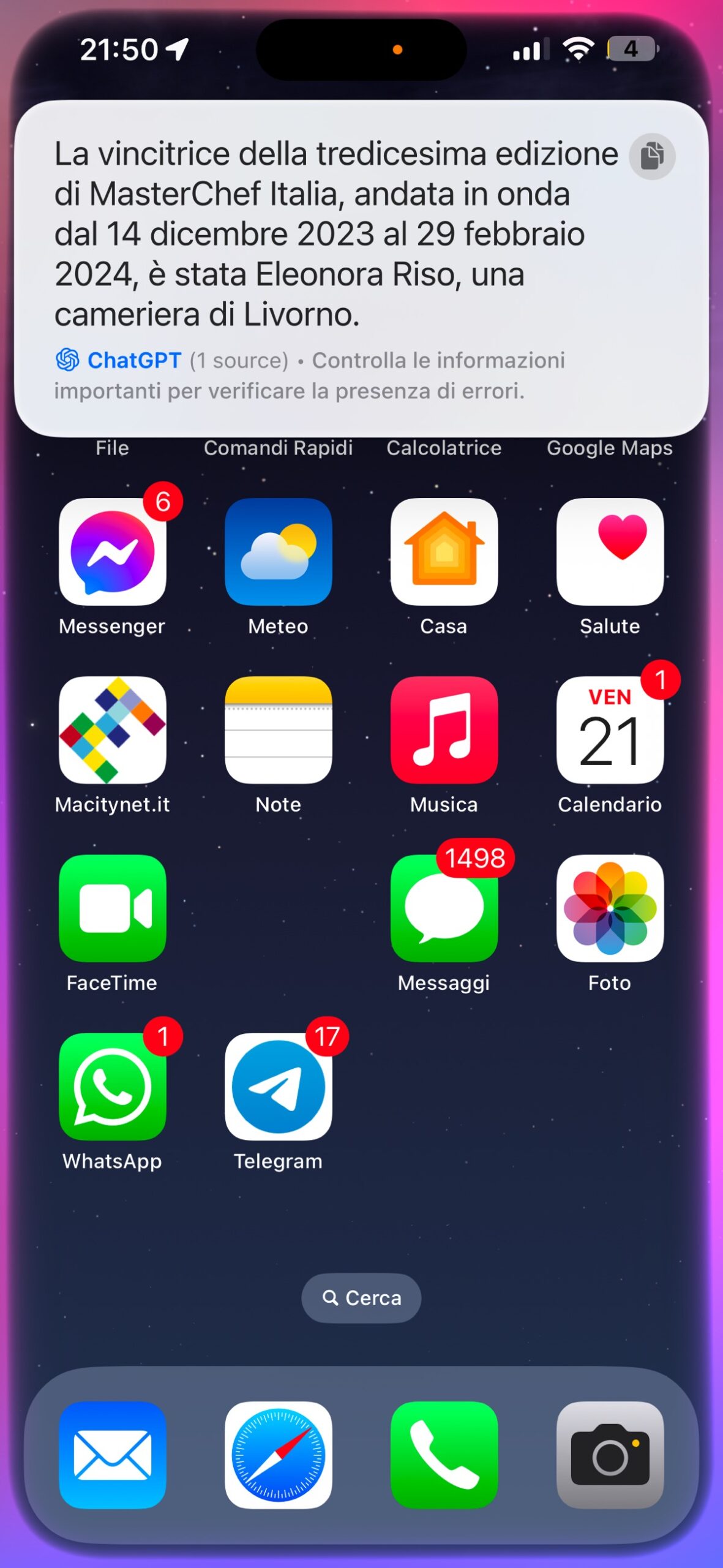 Alle domande a cui Siri non può rispondere ci pensa ChatGPT in italiano.