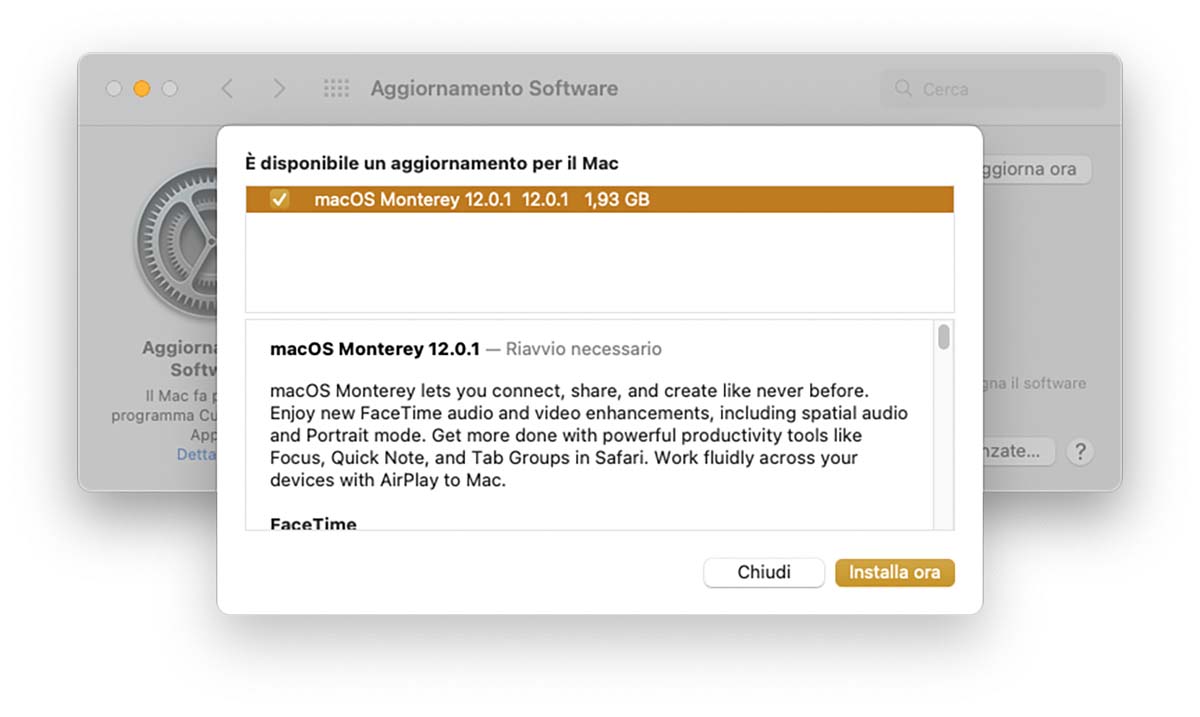 Apple ha inviato agli sviluppatori la seconda “release candidate” di macOS Monterey. L’ultima beta, etichettata come macOS 12.01, arriva a due giorni di distanza dalla precedente (build 21A558) e non è stata ancora rilasciata ai Public Beta tester.