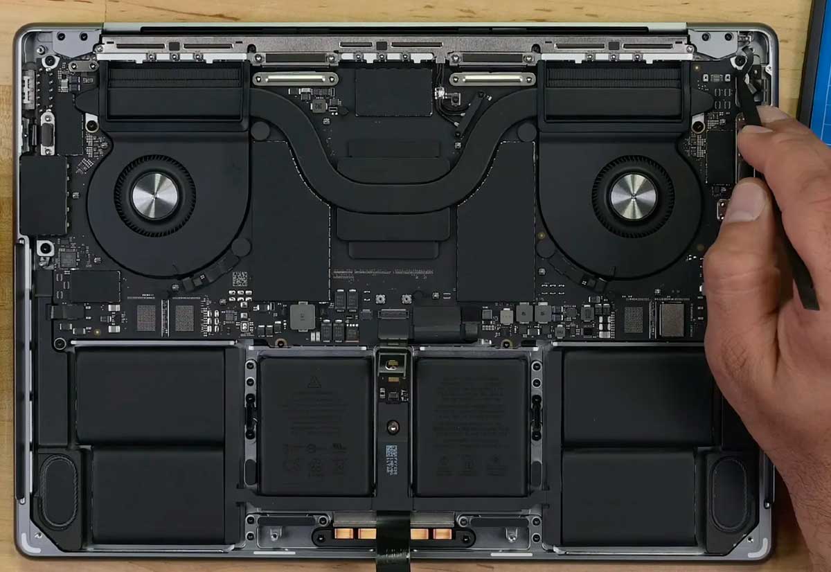 In alto il sistema di dissipazione del calore con due ventole in MacBook Pro 2023, foto iFixit