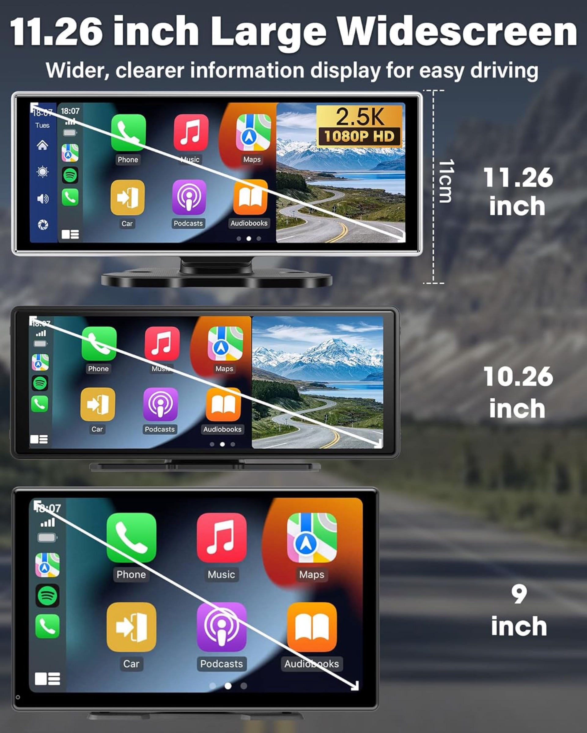Monta infatti un pannello touch da ben 11,26 pollici, abbastanza per poter godere del massimo della tecnologia non solo sulle auto ma anche su SUV, camion e camper. Le dimensioni generose dello schermo permettono di accedere facilmente a CarPlay e Android Auto in modalità wireless, offrendo un’interfaccia comoda e reattiva per navigazione, musica, chiamate e messaggi, anche tramite comandi vocali con Siri e Google.