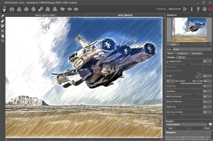 AKVIS Sketch è un software che consente di trasformare le foto in disegni con un’ampia varietà di funzioni creative. Il programma fa apparire la foto come un vero e proprio disegno, permette di creare schizzi a matita in bianco e nero e opere d’arte a colori.
