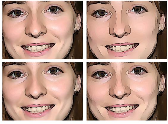 E’ possibile definire vari parametri: “Semplicità ” (il livello dei dettagli), “Raggio” (il raggio di semplificazione), “Sfocatura” (la levigazione del passaggio tra colori simili), “Posterizzazione” (unione dei pixel simili), “Contorni” (delineare le zone di colore con contorni neri), “Attenuazione” (le linee dei contorni) e “Spessore” (lo spessore delle linee di contorno).