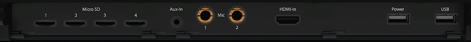 Le porte a bordo includono gli slot per ben 4 micro SD-Card, 4 HDMI, due ingressi ottici, porta Ethernet e divers USB oltre a 2 microfoni.