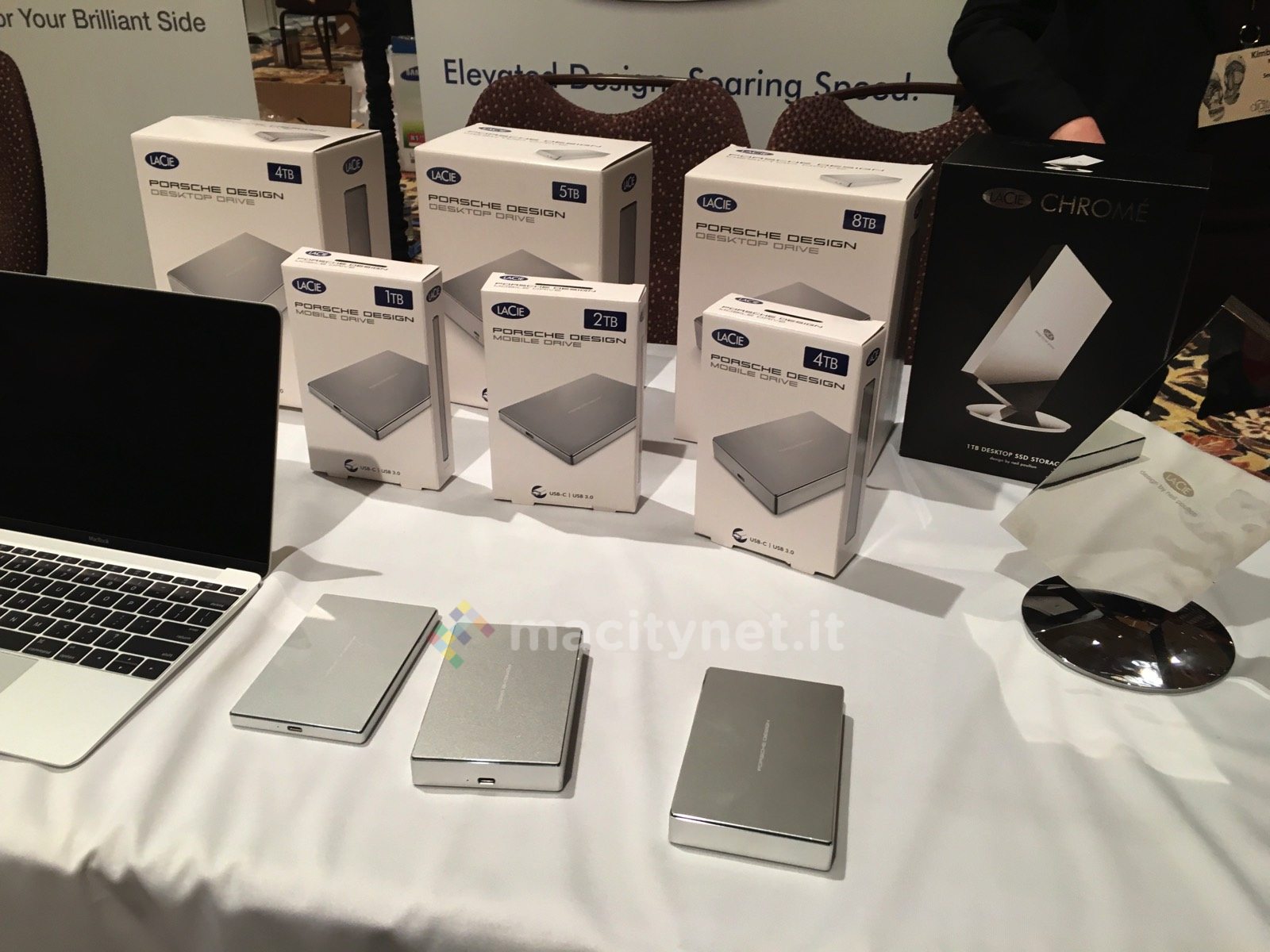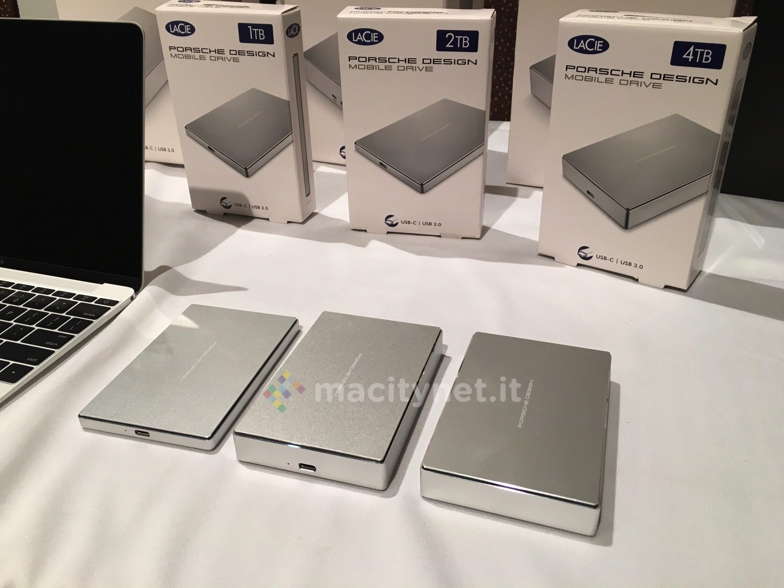 I drive LaCie Porsche Design offrono connettore USB-C, utilizzabile quindi con i MacBook e altri computer con questo attacco reversibile. Le unità sono compatibili con le porte USB 3.0 (tipo-A) grazie a un adattatore incluso di serie.