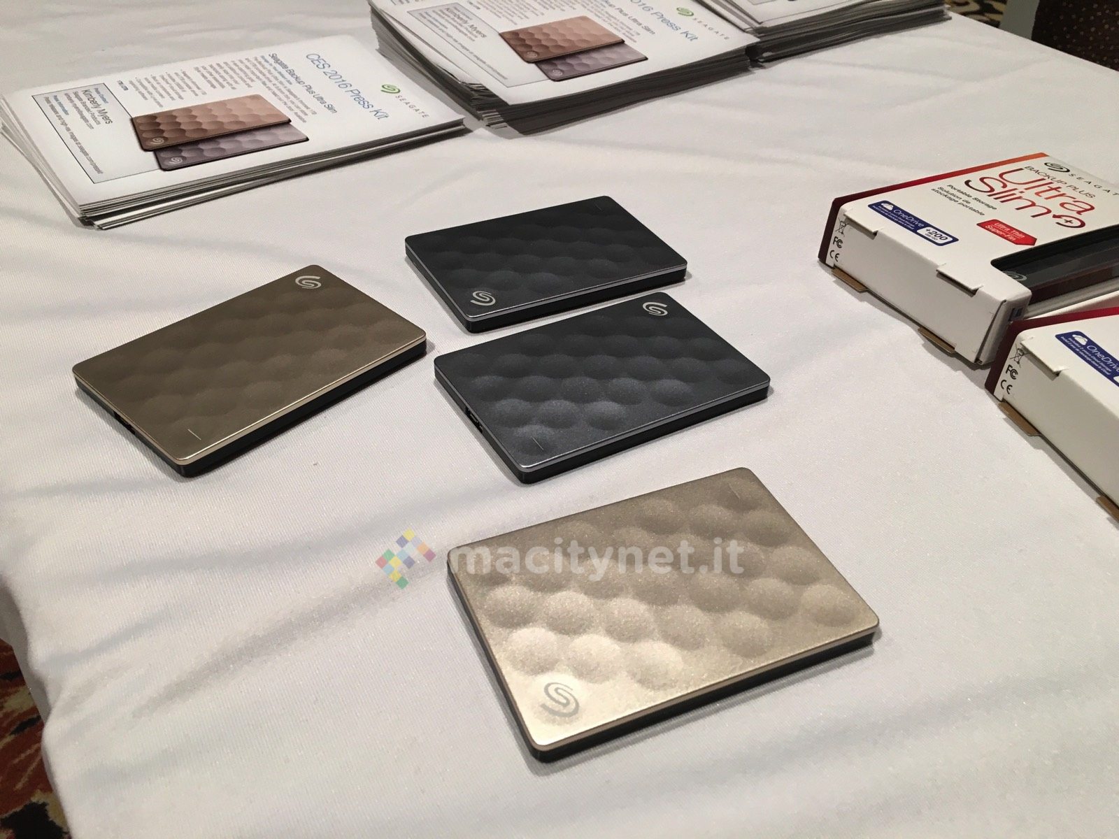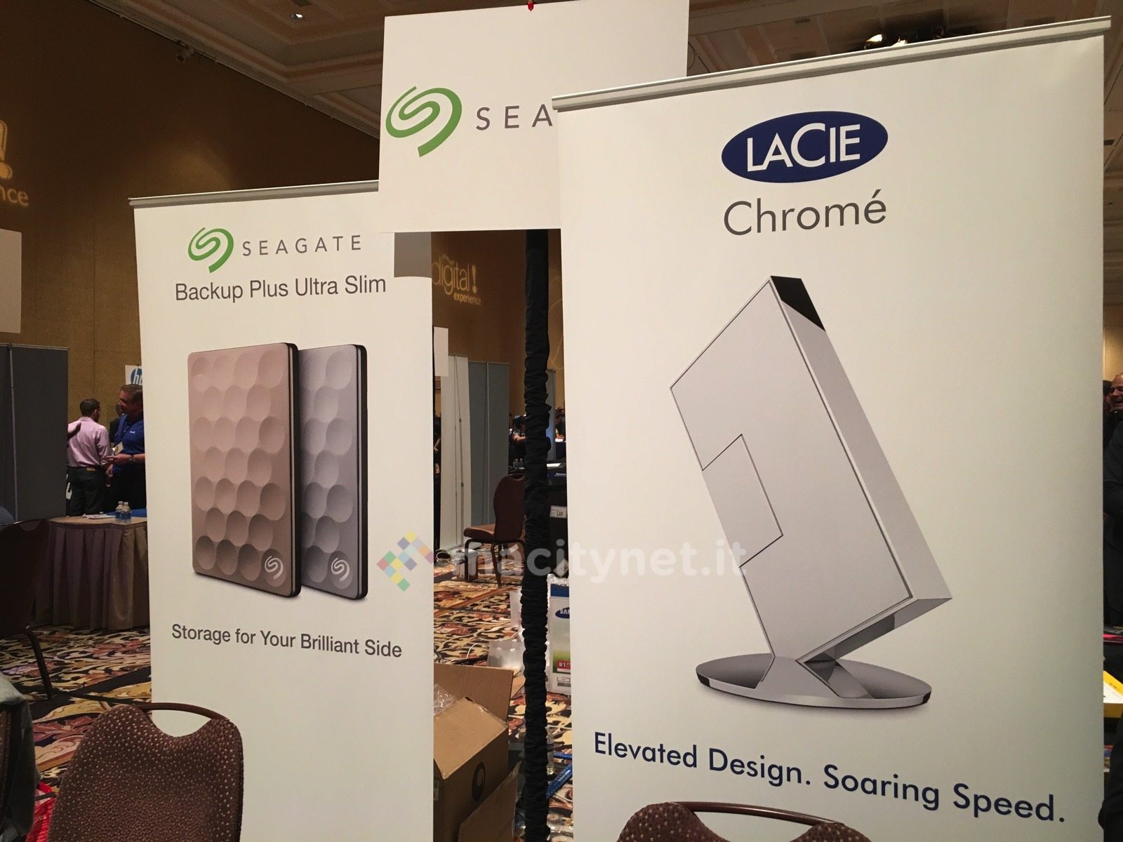 Con il marchio Seagate, è stata invece presentata la linea Seagate Backup Plus Ultra Slim, definite le più piccole unità da 2TB al mondo. Tra le peculiarità del prodotto, 200GB di spazio su Microsoft OneDrive e l’inclusione di serie di utility per il backup. Le unità sono spesse 9.6mm, integrano HDD da 2,5″; saranno disponibili nelle varianti con colorazioni gold e platinum nel corso del primo trimestre di quest’anno. I prezzi non sono stati comunicati.