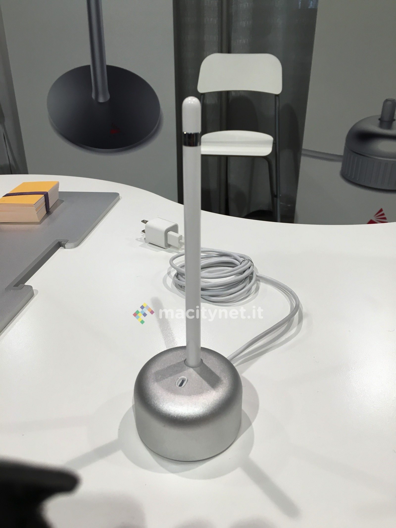 Base è invece, come dice il nome stesso, un supporto progettato unicamente per Apple Pencil che mantiene la penna in verticale su un piano di lavoro ed al contempo la ricarica, evitando così di doverla collegare alla presa di iPad Pro.