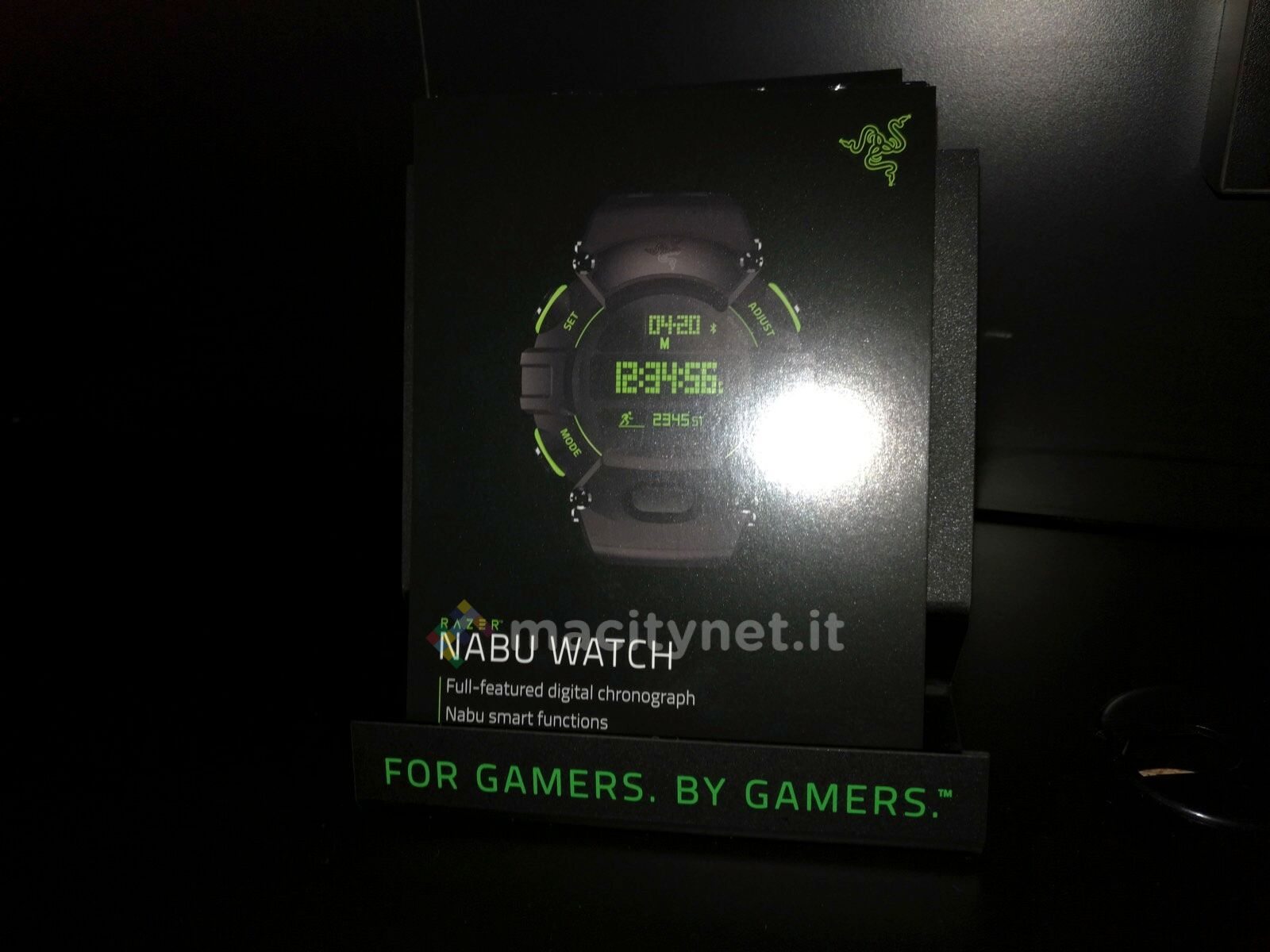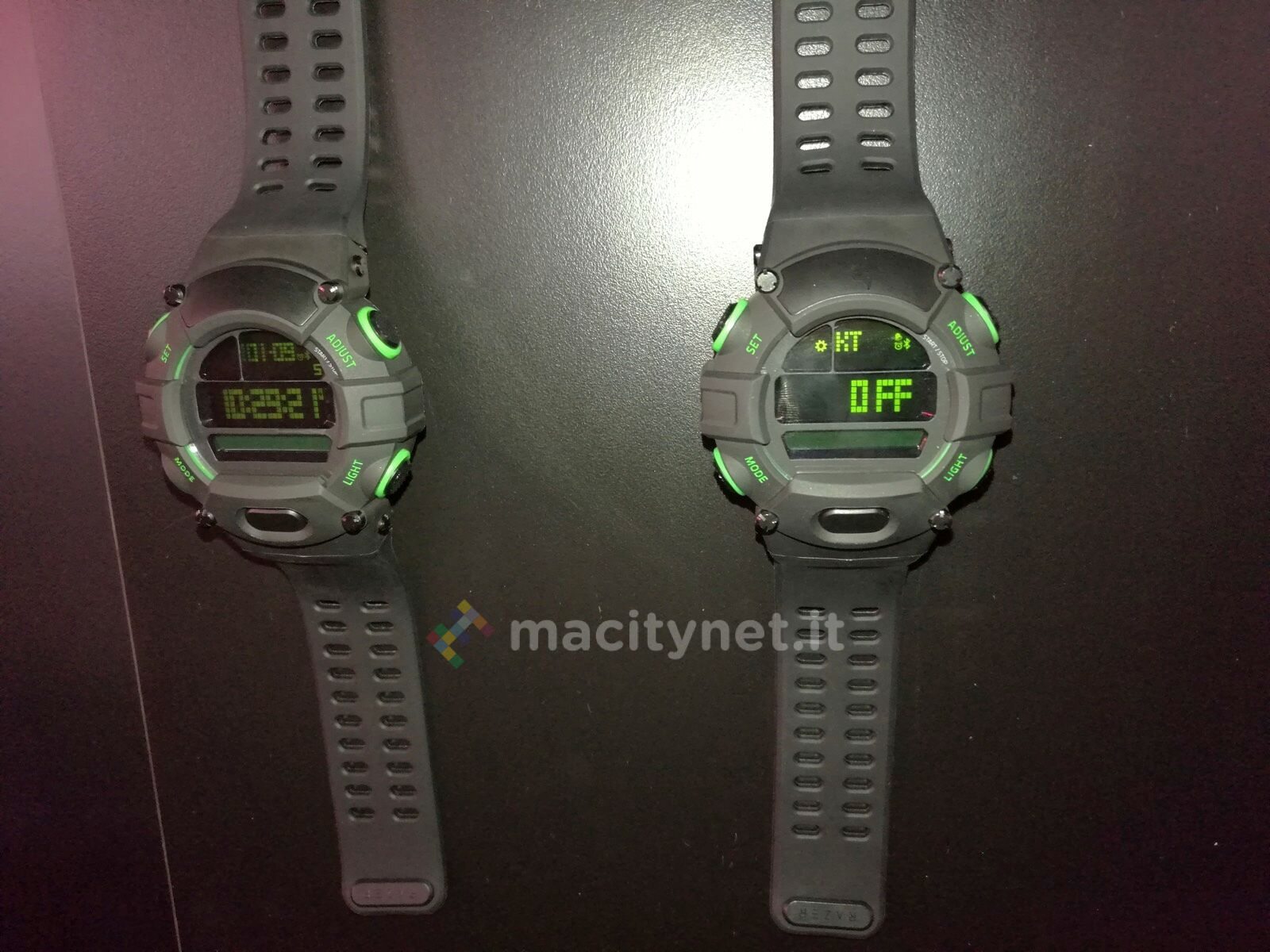 Il Razer Nabu è infatti un accessorio da polso che ricorda nello stile i segnatempo in voga a partire dagli anni ’90, dotati di molte opzioni, uno stile aggressivo e decisamente sportivo. Come i predecessori, include tutta una serie di funzioni tipiche, come cronometro, conto alla rovescia, allarmi, avvisi, ora globale e schermo retroilluminato.