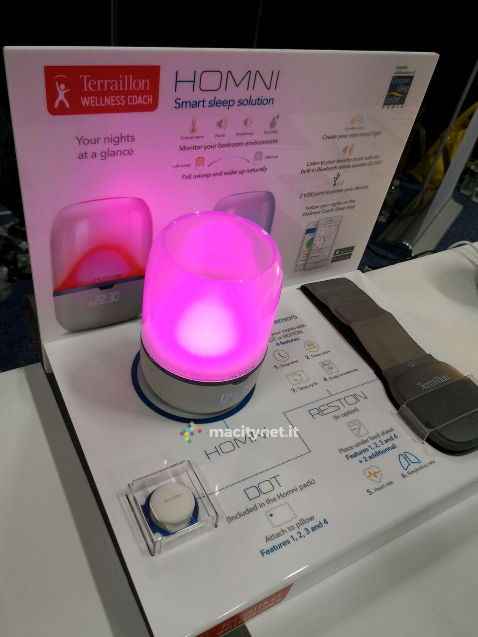 Per migliorare la qualità del sonno, allora, Terraillon ha pensato Homni, in mostra in queste ore al CES 2018 di Las Vegas. Si tratta di una piccola lampada da comodino intelligente. Quando si va a letto, la lampada inizia a diffondere una varietà di colori, che aiuteranno l’utente ad addormentarsi. Al contrario, quando ci si sveglia, i colori renderanno più facile questa fase. Una mini terapia fatta in casa, sviluppata con specialisti del settore, in collaborazione con lo European Sleep Centre che ha sede a Parigi.
