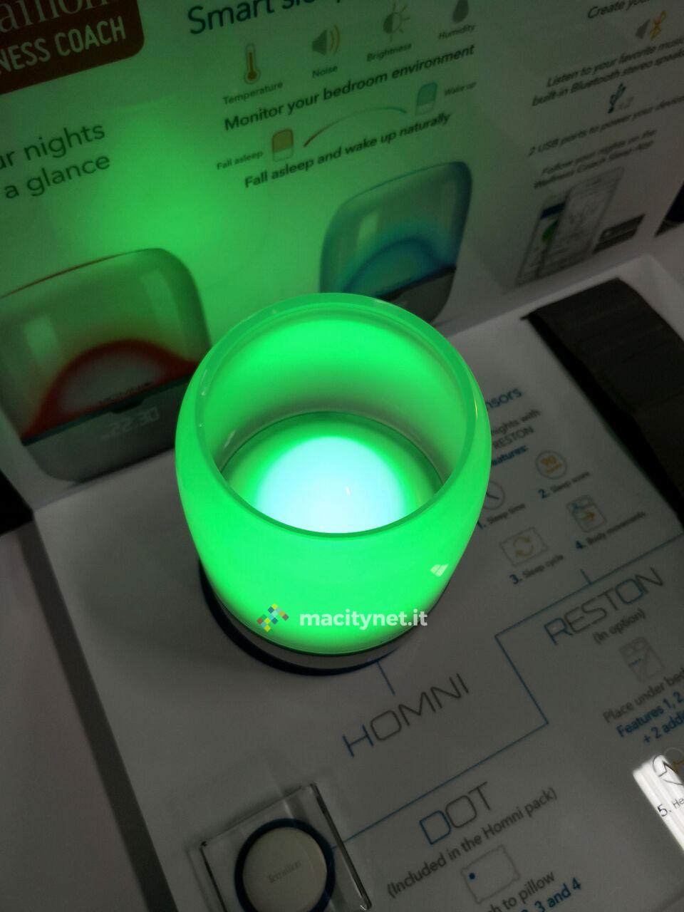 Al CES 2018 Homni è la lampada colorata che aiuta l’utente a dormire meglio; la periferica rende più facile prender sonno, diffondendo luci colorate nella stanza, e non solo, facilitando così la caduta tra le braccia di Morfeo.