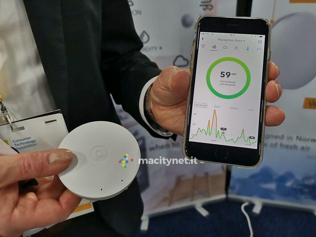 Al CES 2019 Airthings propone la sua nuova linea di prodotti intelligenti per misurare la qualità dell’aria in casa o al lavoro Airthings Wave e Wave Plus. I nuovi sensori sono in grado di misurare il livello di l’anidride carbonica, il radon, i composti organici volatili (VOC), nonché la temperatura, pressione e il grado di umidità.