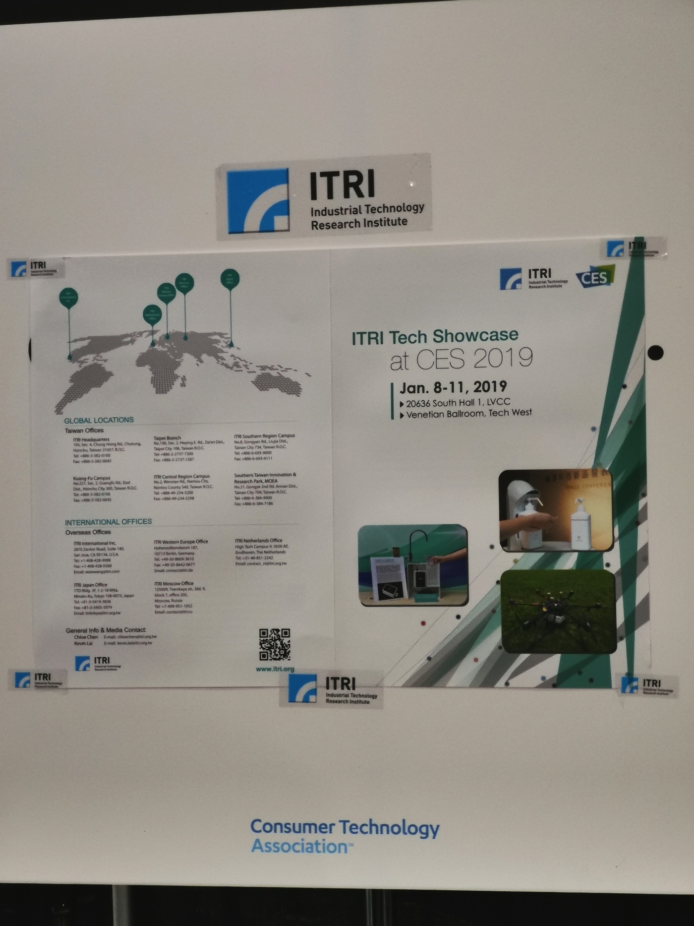 Il taiwanese Industrial Technology Research Institute (ITRI), al Consumer Electronics Show (CES) di Las Vegas presenta varie novità interessanti, due delle quali hanno vinto il CES 2019 Innovation Award: l’Hybrid Power Dron e uno spray disinfettante creato dalla controllata ELECLEAN.