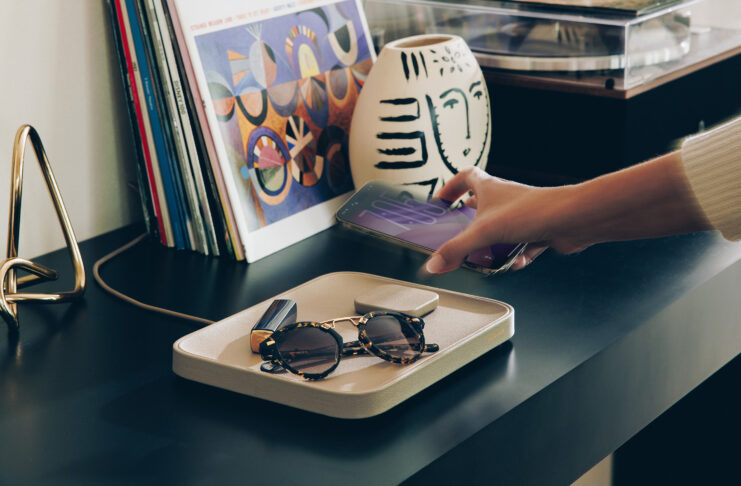 A differenza dei soliti pad di ricarica in plastica, questo accessorio è rivestito in pelle vegana di alta qualità e dispone di una base zavorrata e antiscivolo, pensata per restituire una sensazione di solidità e stabilità. Il design prevede che la superficie di ricarica sia leggermente rialzata rispetto al resto del vassoio; si tratta di una scelta funzionale che serve a mantenere lo smartphone separato dagli altri oggetti metallici, come ad esempio un mazzo di chiavi, evitando così il rischio di graffi accidentali mentre si svuotano le tasche a fine giornata.