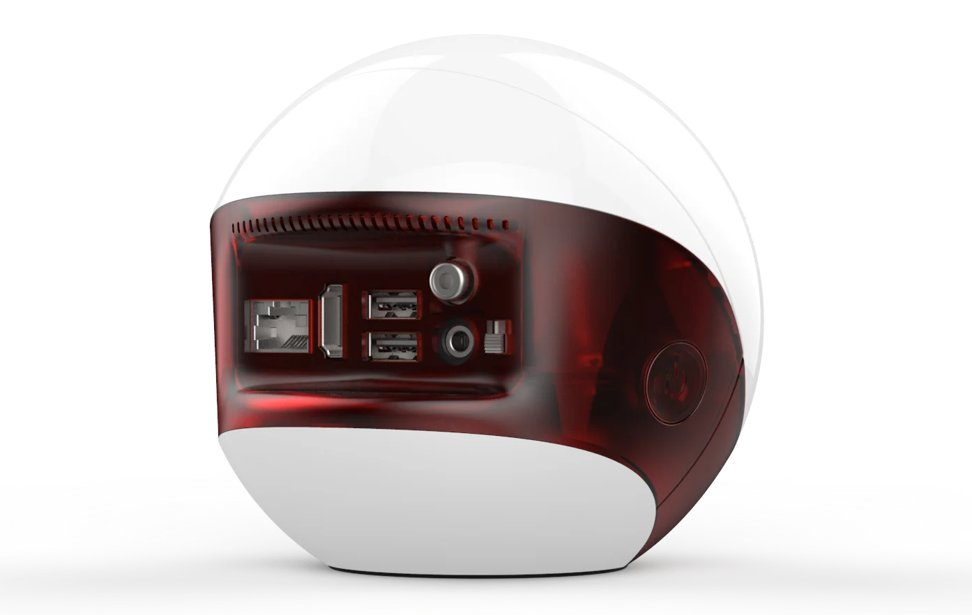 I nostri inviati, presenti alla fiera, hanno avuto modo di fotografarlo e toccarlo con mano, informandosi sulle potenzialità di quello che sostanzialmente è un mini-PC dalla particolarissima forma sferica dello chassis, in plastica bianca lucida.