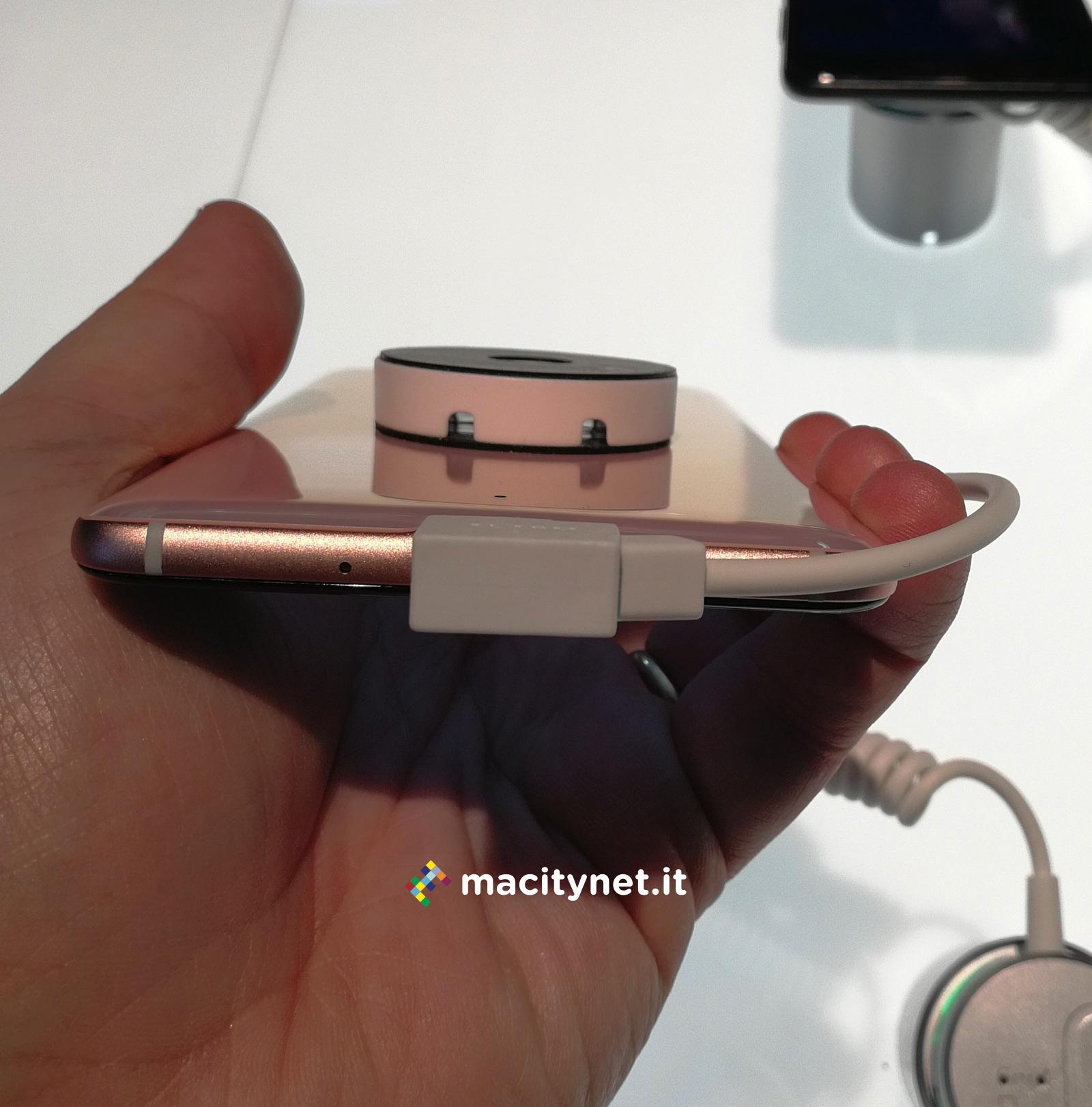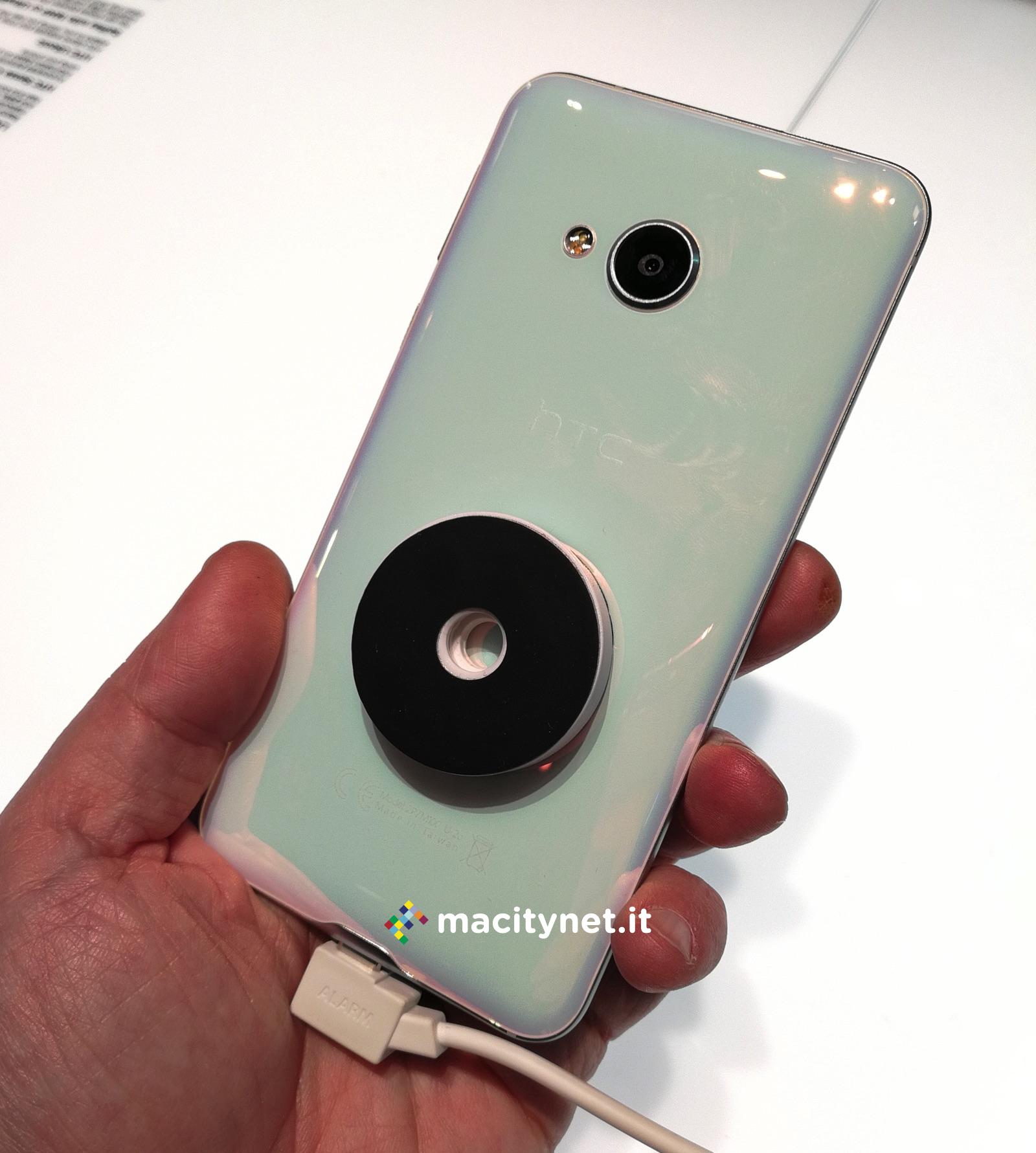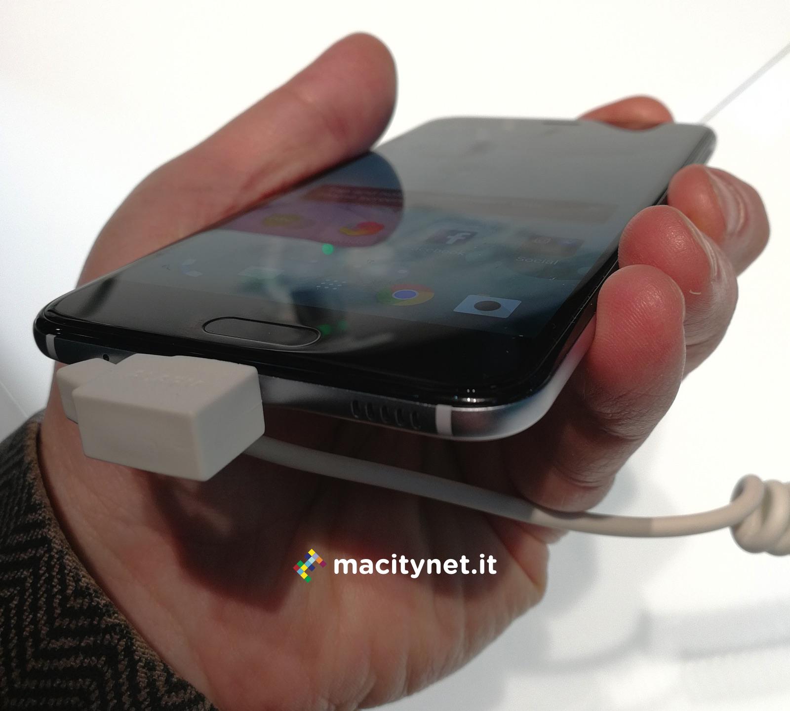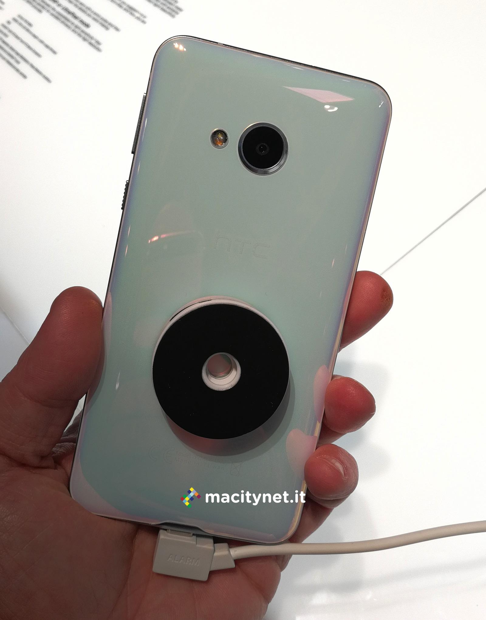 Il primo dei due terminali è HTC U Ultra, il top di gamma, con dimensioni generose, pari a 162.41 x 79.79 x 7.99 mm, con una diagonale da 5,7 pollici e un peso complessivo comunque contenuto in 170 grammi. Il terminale incorpora 2 display. Il primo, quello principale, con diagonale complessiva da 5,7 pollici e risoluzione Quad HD, mentre il secondo sulla parte alta, da 2,05 pollici, ha una risoluzione 1.600 x 1.040 pixel e permette di prendere immediato contatto con notifiche, app e contatti, un po’ come nella serie V di LG. Si tratta di una sorta di touch bar, in cui, a seconda degli applicativi aperti, appariranno tasti rapidi, per gestire al meglio l’app. Inoltre, a terminale in stand by, questo display rimarrà accesso per poter prendere visione delle notifiche.