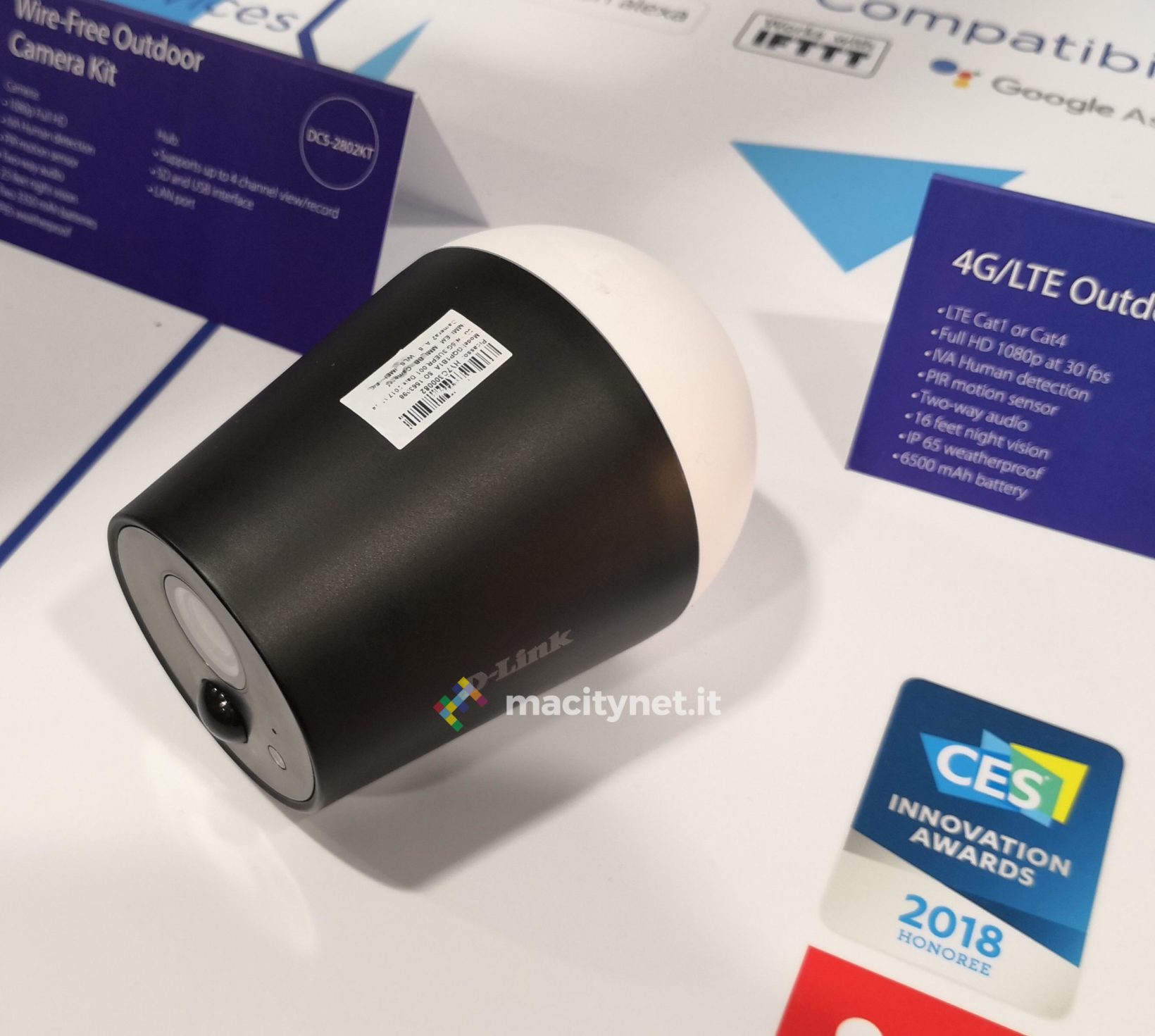Tra le periferiche presentate c’è, anzitutto, la videocamera Wi-Fi per esterni Full HD dual lens con visuale di 180°, modello DCS-8650LH, la camera per esterni dotata di modulo 4G LTE (DCS-1820LM) e il kit di 2 videocamere per esterni senza fili, con alimentazione a batterie ricaricabili (DCS-2802KT).