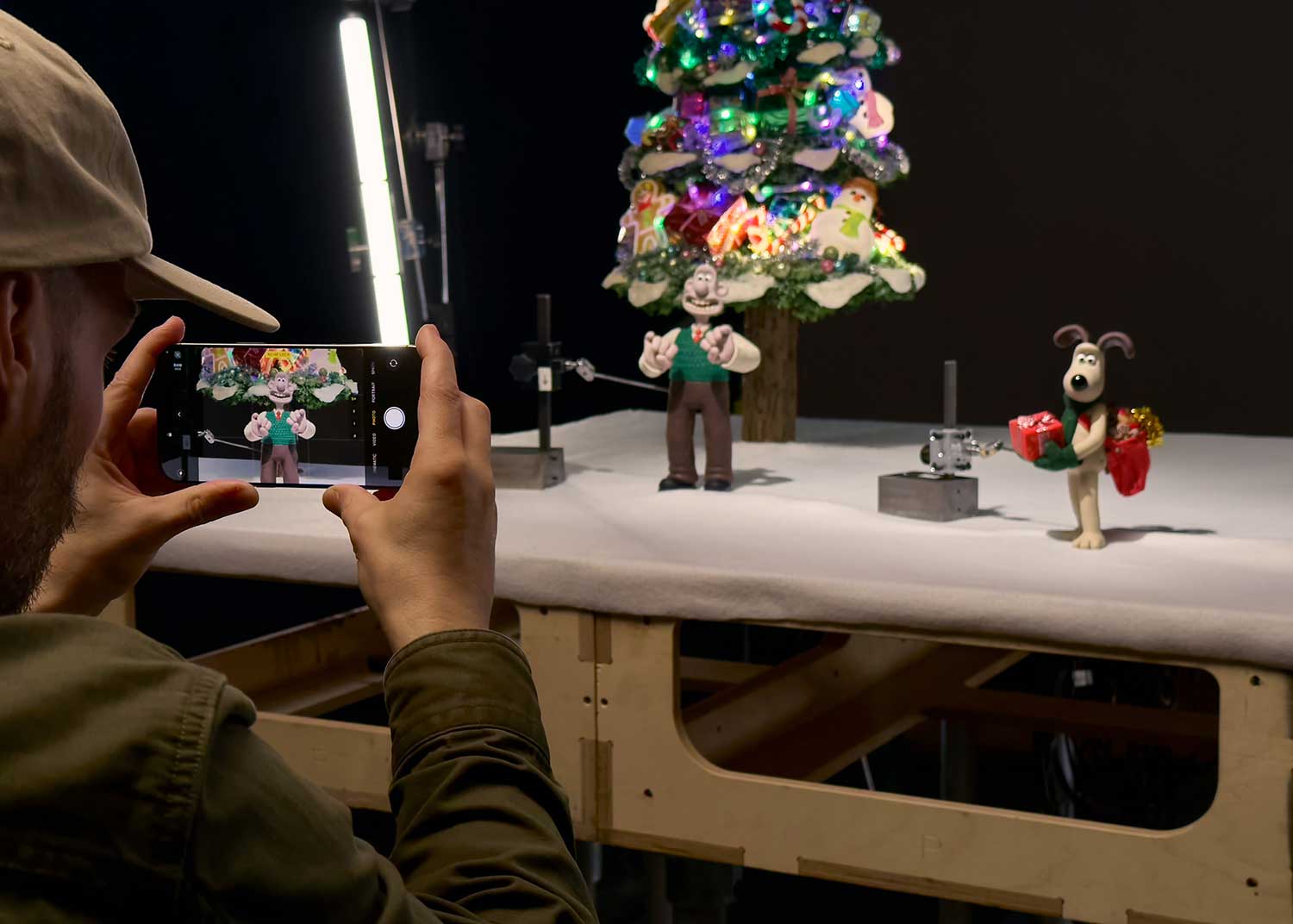 Apple spiega che un iPhone 16 Pro Max è stato montato su teste motorizzate sul set per catturare due angolazioni degli alberi di Natale, scattando in stop-motion un totale di 6000 frame. Il teleobiettivo 5x di otto iPhone 16 Pro Max è stato usato per scattare immagini ad alta risoluzione ProRAW, assemblando i risultati frame per frame per produrre uno spettacolare video 6K.