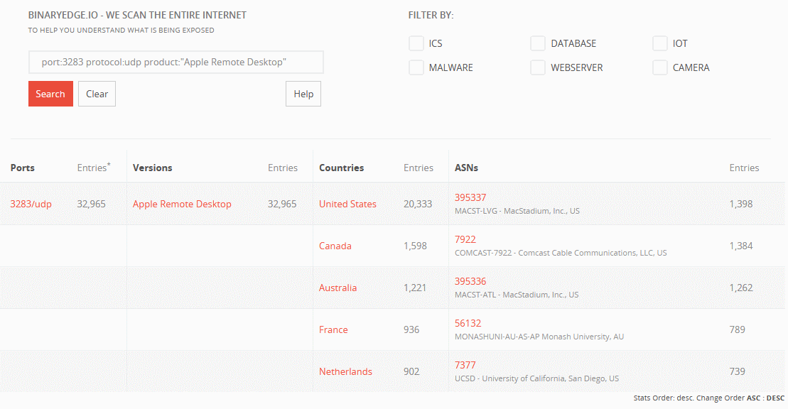 Il motore di ricerca BinaryEdge segnala circa 40.000 sistemi macOS con la funzione Remote Desktop attiva, con sistemi raggiungibili via internet. Attacchi avrebbero fatto registrare picchi elevatissimi di 70 Gbps, con attacchi osservati dalla Keyo University Shonan Fujisawa Campus (un campus orientato alla ricerca della Keio University situato nella città di Fujisawa), ma anche dal systems administrator italiano Marco Padovan.