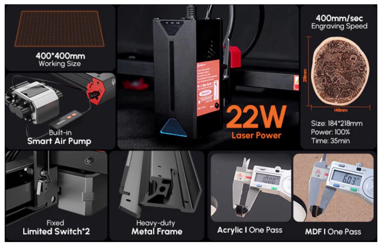 Non solo: per i primi 10 ordini, gli acquirenti riceveranno una licenza gratuita di LightBurn della durata di un anno e un pannello a nido d’ape di dimensioni 400*400mm, con un valore complessivo di $139.99.