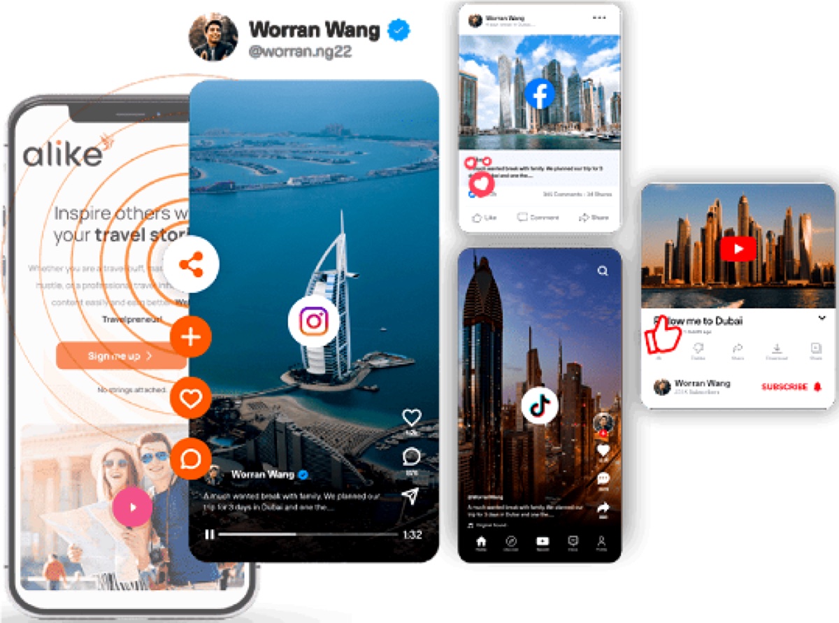 Alike.io è un social marketplace di viaggio che punta a stabilire un nuovo modo di condividere, scoprire, pianificare e prenotare esperienze di viaggio. Lanciata in collaborazione con Dubai Tourism e con Dubai come città partner fondatrice, la piattaforma mette in connessione viaggiatori e creatori di contenuti di viaggio, offrendo benefici a entrambi.
