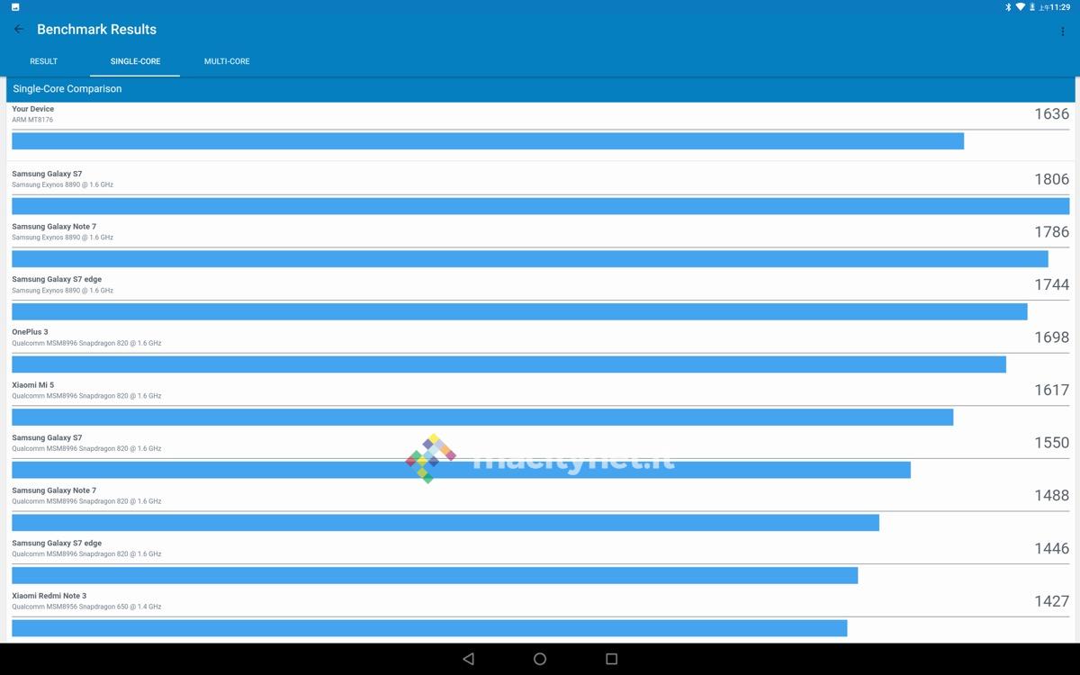 Per conoscere le performance di Alldocube X basta dare uno sguardo ai risultati dei test benchmark. Il nuovo tablet ha infatti raccolto 103.865 punti nel test con AnTuTu, con 1.636 punti in single core – posizionandosi quindi tra le performance su carta di OnePlus 3 e Xiaomi Mi 5 – e 3.941 punti in multi core, a metà tra il Note 5 e il Galaxy S6 di Samsung.